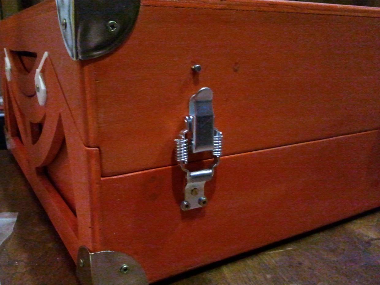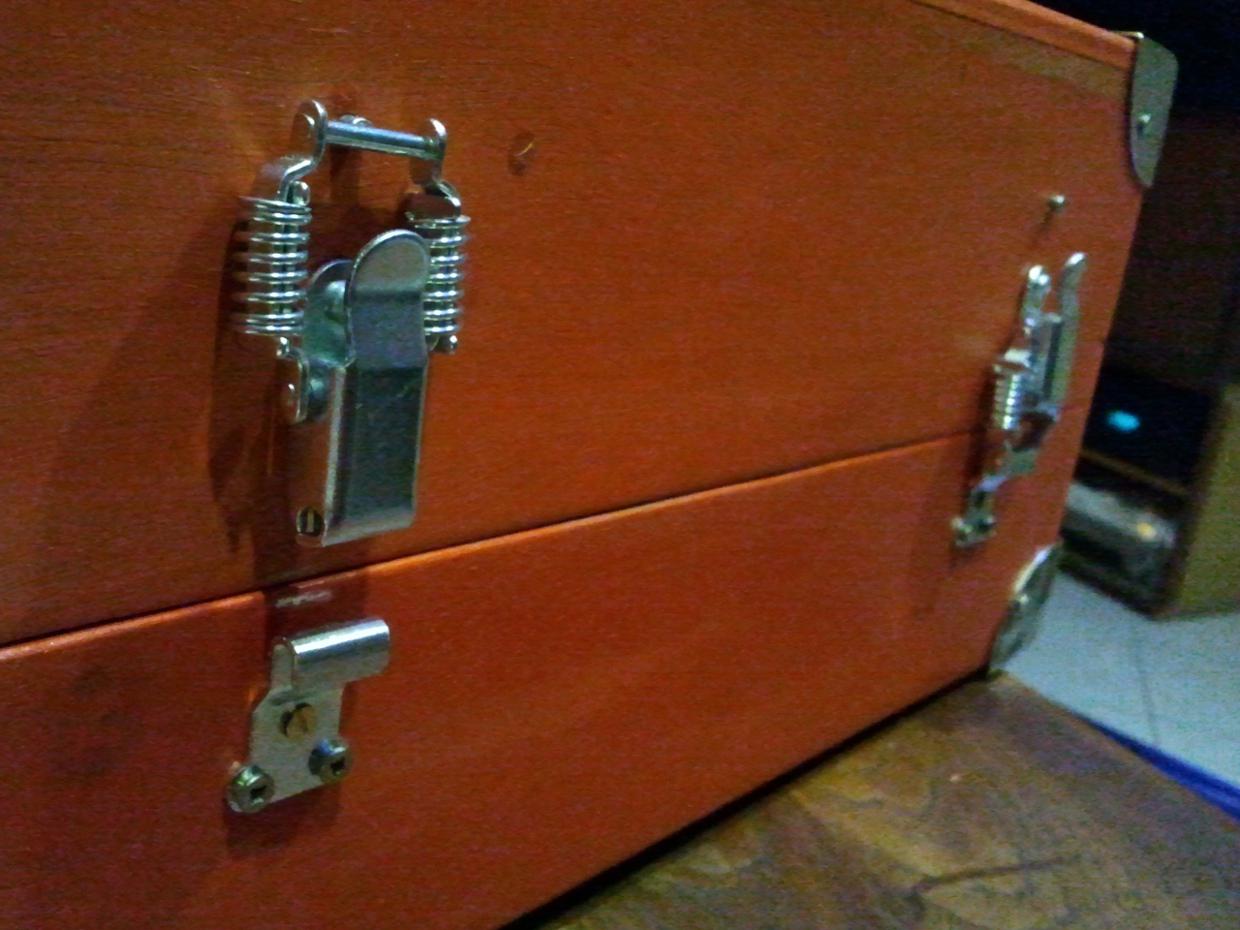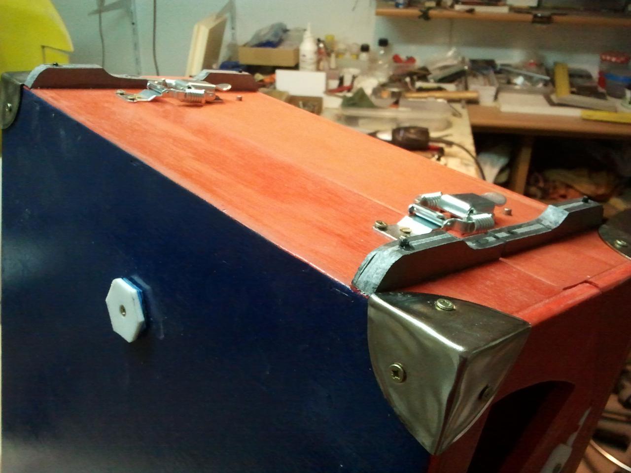 effectivement les fermoirs... alors j'ai collé de petits aimants au bon endroit pour bloquer les grenouillères en place, et faudra inventer des pieds... pas fin de ma part, de même si tu regardes bien j'ai fixé les haches sur le mauvais côté de la caisse (je bosses par bribes entre mille autres choses et ça me déborde un peu parfois... en même temps je veux finir ce scope car mon chantier de salle de bain est à l'arrêt et tout le monde me fout la pression ici !)
