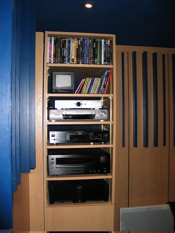 - Enceintes : Bullet A1, le célèbre projet de groupe de HCFR. Elles fonctionnent très très bien avec une remarquable tenue dans les basses, au point que j'ai revendu mon caisson. Le tweeter 1" en soie Scanspeak est de très bonne qualité, c'est une très belle enceinte de 40Kg pièce quand même ! J'ai refait le filtrage en mode série avec des condensateurs de course gros comme mon poing. j'ai aussi une centrale Bullet pour le HC (rare), la partie arrière est faite avec des Cabasses.