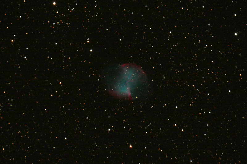 Pose unique de 90 secondes en Alt-AZsans filé d'étoile...tu as fait cette image quand ? il fallait quand meme que M27 soit bien positionnée pour etre suivie comme ça...bravo!