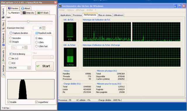 Pour mes acquisitions j'ai conservé un vieux Dell sous XP; j'ai l'impression que PHD Guiding fonctionne mais je n'ai pas d'étoile à l'écran. Je dirais que ça ressemble à un défaut de sensibilité.