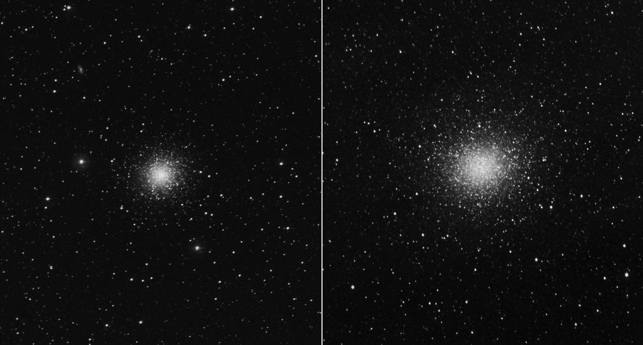 Il serait très instructif de pouvoir comparer, avec le même imageur et le même set-up, ces deux amas globulaires stars des deux hémisphères que sont Oméga du Centaure et Messier 13, et ainsi pouvoir comparer leur taille respective. Histoire de se faire une réelle idée !
