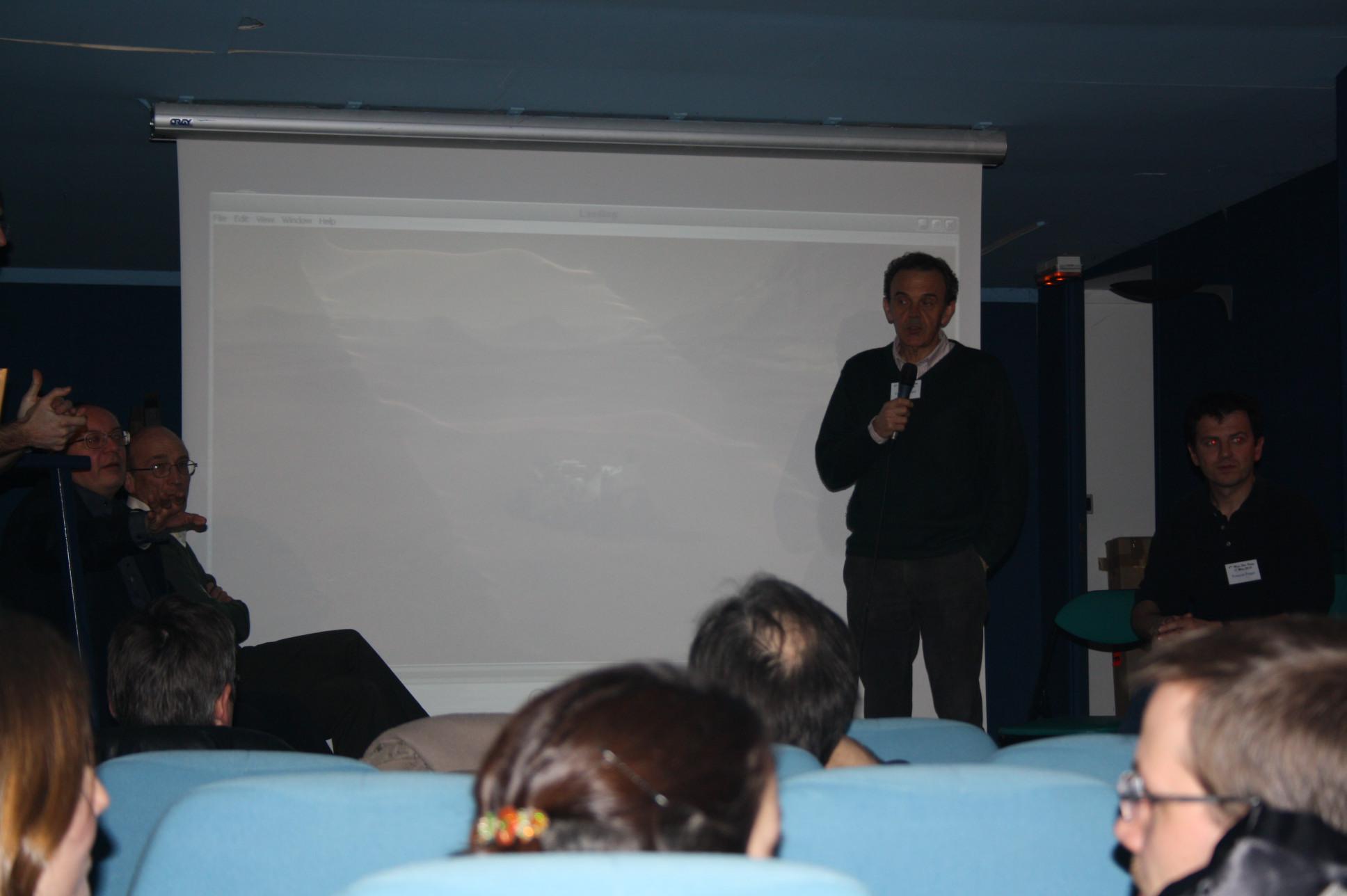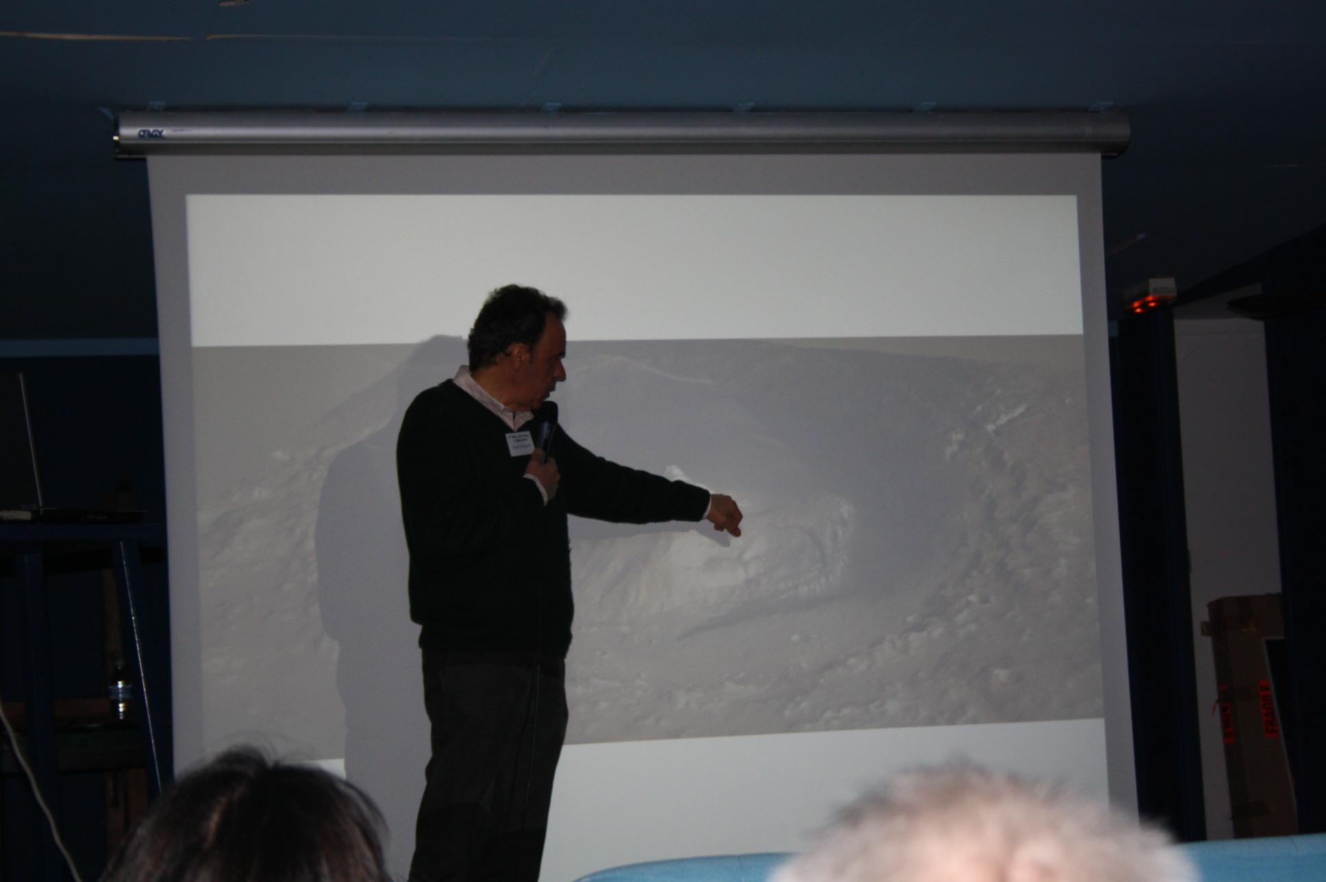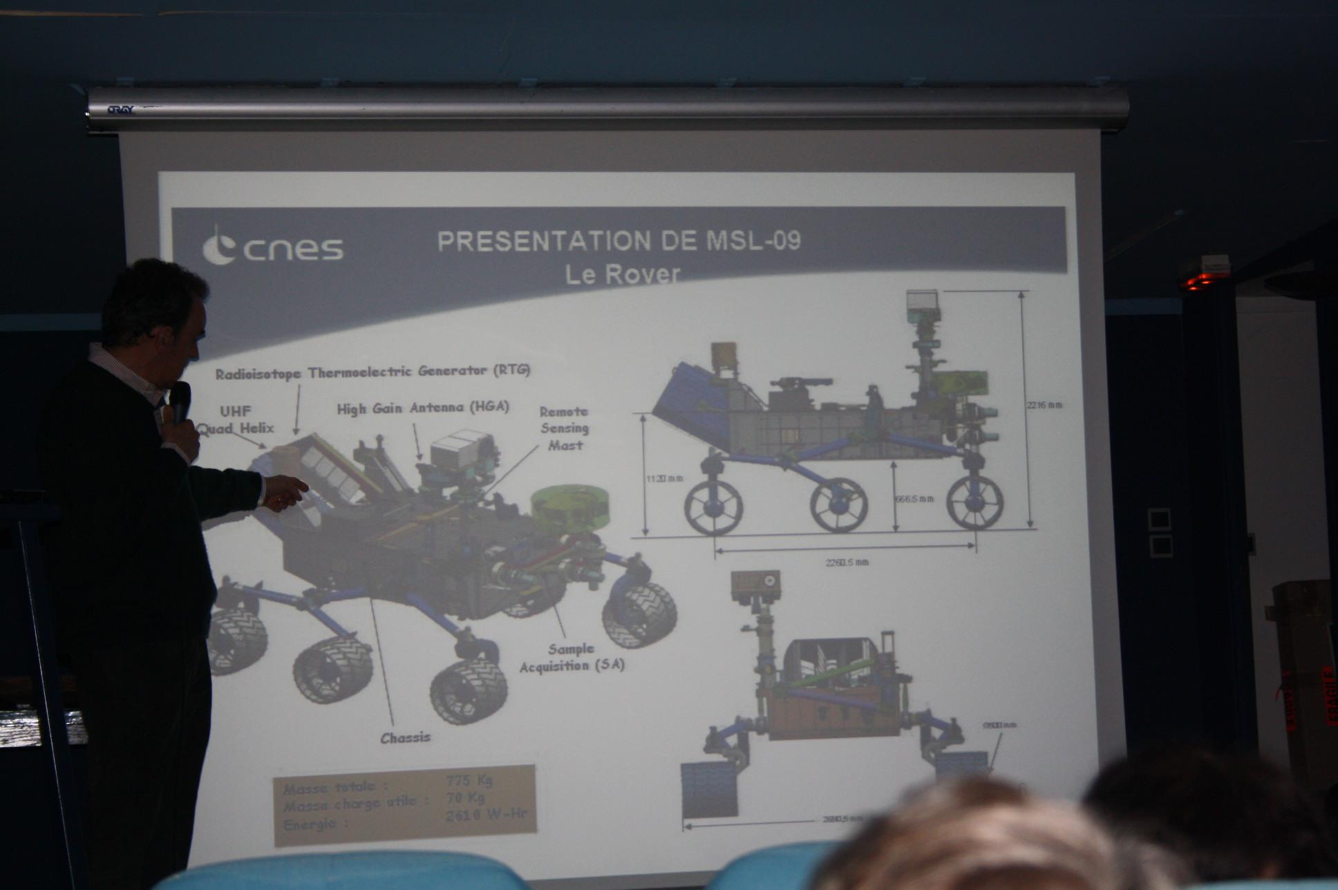 Will : Oui, j'y étais, et bien au premier rang pour les deux conférences. Un petit gros d'une cinquantaine bien frapée, à lunettes, le cheveux rare, pas très bien habillé, avec un accent indéfinissable. J'ai posé une question sur le méthane martien et la réponse de F.Rocard m'a un peu surpris. J'ai aussi questionné F. Forget sur sa modélisation de l'atmosphère primitive de Mars. J'en parlerai dans les topics martiens. Je me suis encore permis une réflexion judicieuse sur l'hypothèse du trajet dans Gale, prévu pour Curiosity... :cool: