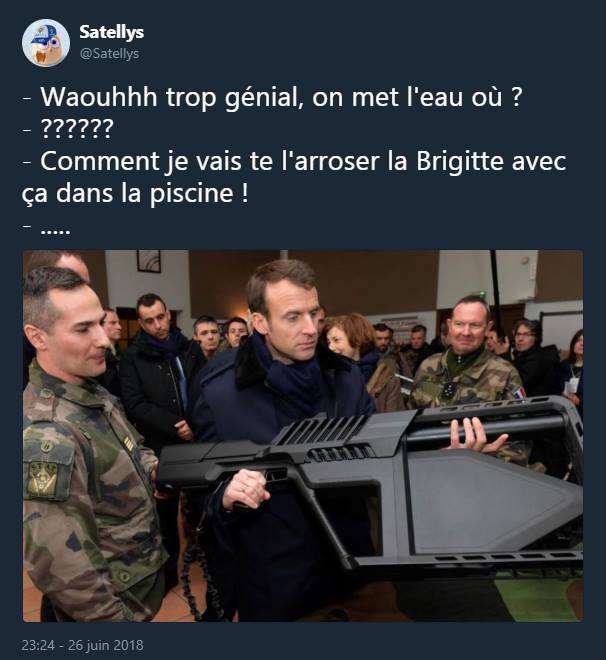 - Lundi 10/09 : Macron s'immisce dans la dispute :"avec Brigitte on part en vacances en Iran, qu'il est beau ce pays et là-bas ils ne mangent pas de Hamburgers"