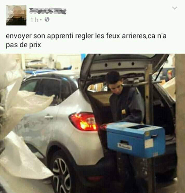 Oui pour les feux arrière, c'est le gag que les garagistes font aux apprentis, comme quand on demande aux apprentis cuisiniers d'aller chercher chez les confrères une échelle à monter les blancs ou le fil à lier les sauces :be: