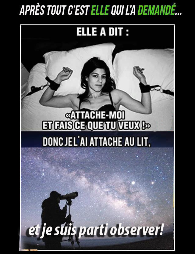 Et fait un petit effort pour la derniere... le commentaire dans l'image n'a rien a voir avec le sous tif. T'es une femme a priori, je suis sur que ca te parles, que c'est du vécu...^^ ou alors tu es extrêmement chanceuse ... ou extrêmement malchanceuse...