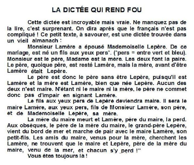 la dictée de mort ! j'en connais quelques uns qui en pleurerait .... de douleur