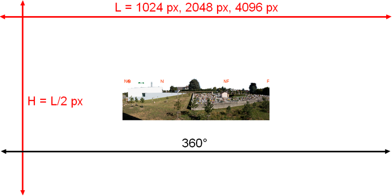 Ce n'est pas ton appareil photo qui va redimensionner les images, mais toi avec un logiciel adapté (Gimp, Photoshop, Photofiltre...). Les images DOIVENT obligatoirement faire 512x256, 1024x512, 2048x1024, etc en taille (la largeur=2 x la hauteur et hauteur = puissance de 2).