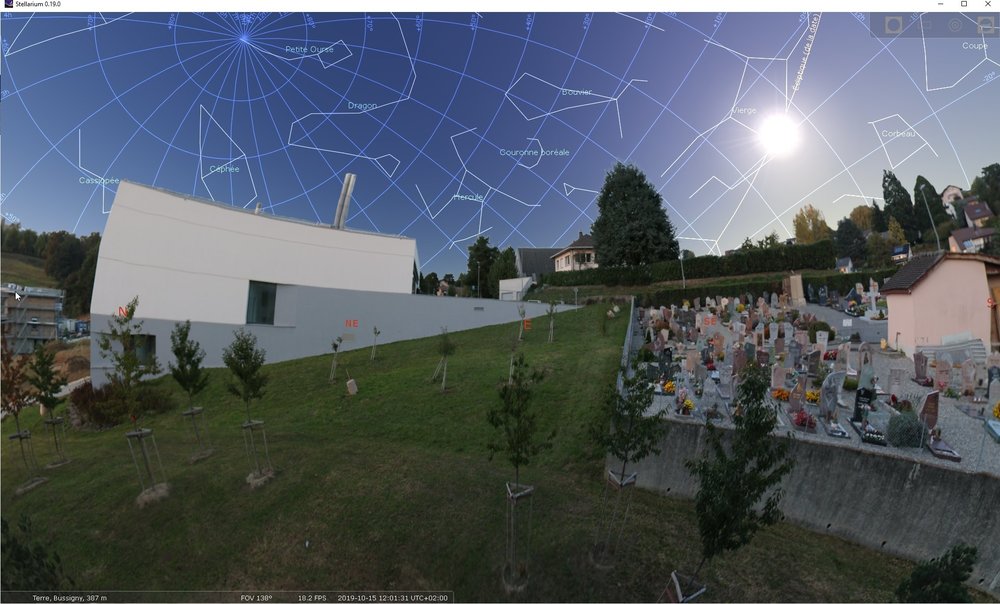 Ceci dit, faudra peut-être plancher sur un tuto plus complet avec pas à pas illustré sur les deux méthodes possibles à savoir avec une seule image ( celle-ci ) et avec découpage du pano en X images que Stellarium assemble lui-même. Et le tout dans la Wapédia peut-être ;)