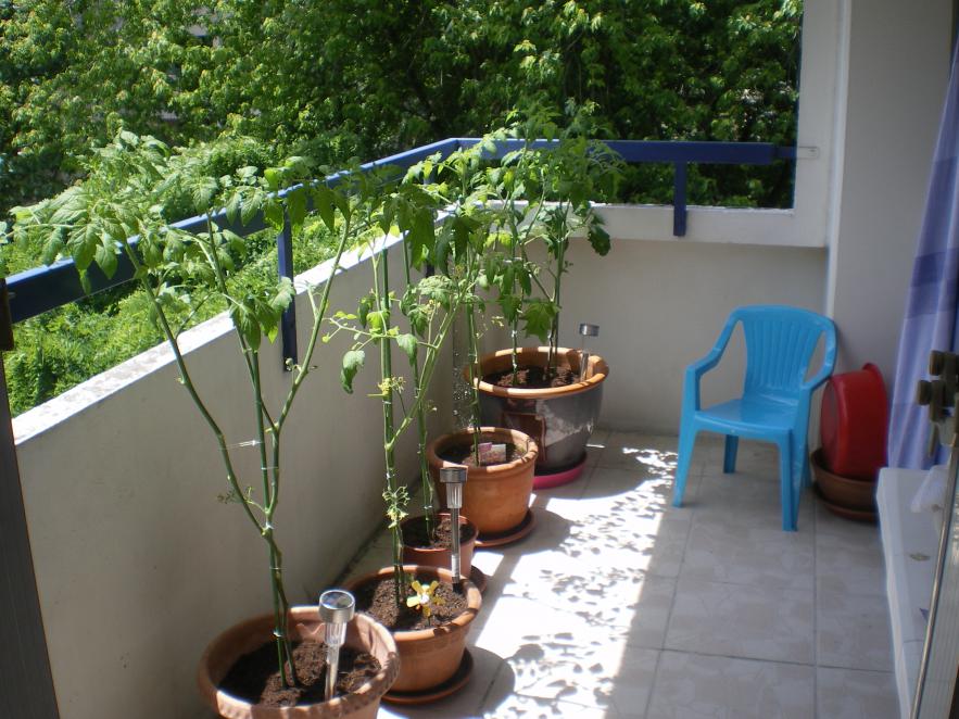 Oui tu as raison moi aussi j'ai mon petit univers sur la terrasse et n'ayant pas de jardin (j'habite en étage), je me suis dit que ça n'était pas cela qui allait m'empêcher de me lancer dans la réalisation d'un "potager". Voici donc mes premiers pieds de tomates-cerise :be: :be: :be: 100% BIO!