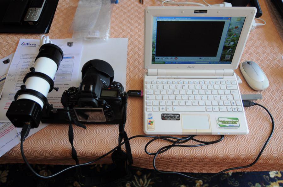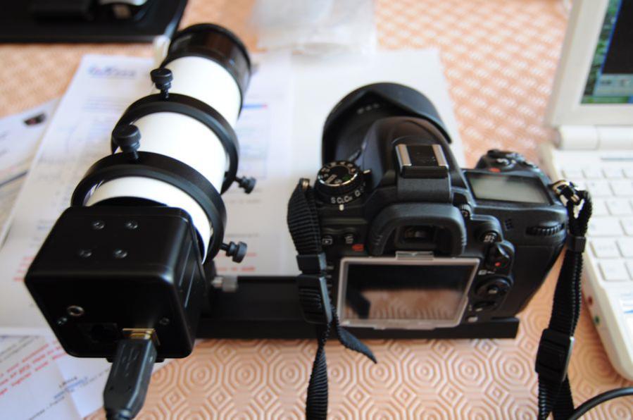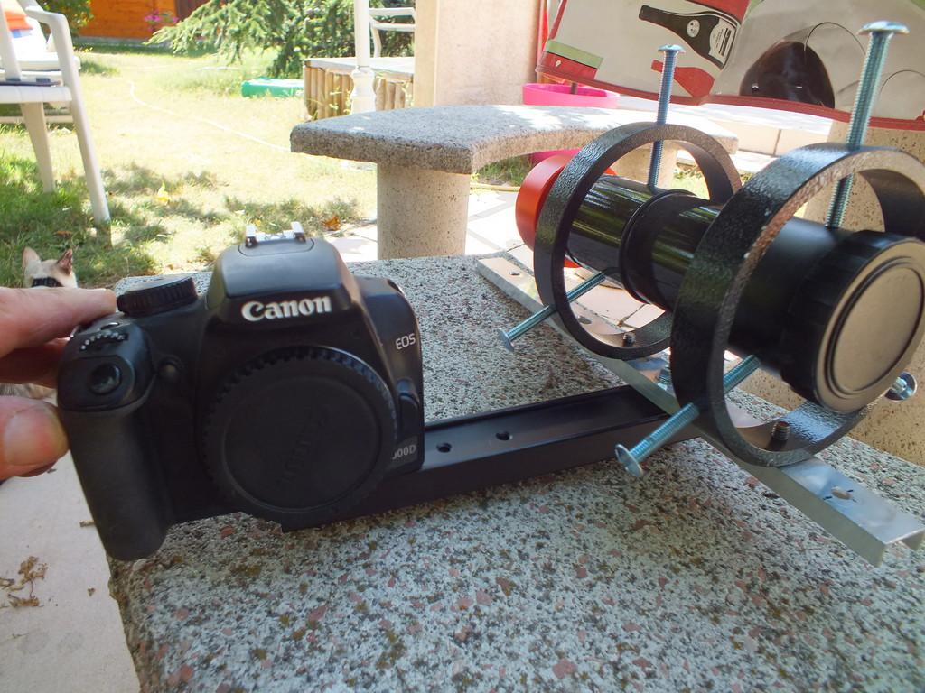 une fois ce montage effectué, on place le tous sur la monture, en basculant la dec d'un quart de tour, (pour que l'apn pointe devant forcement) tout en plaçant l'apn qui sera le plus lourd le plus pret possible du centre de gravité afin d'utilisé le chercheur comme un contre poids comme sur une pirogue haïtienne.