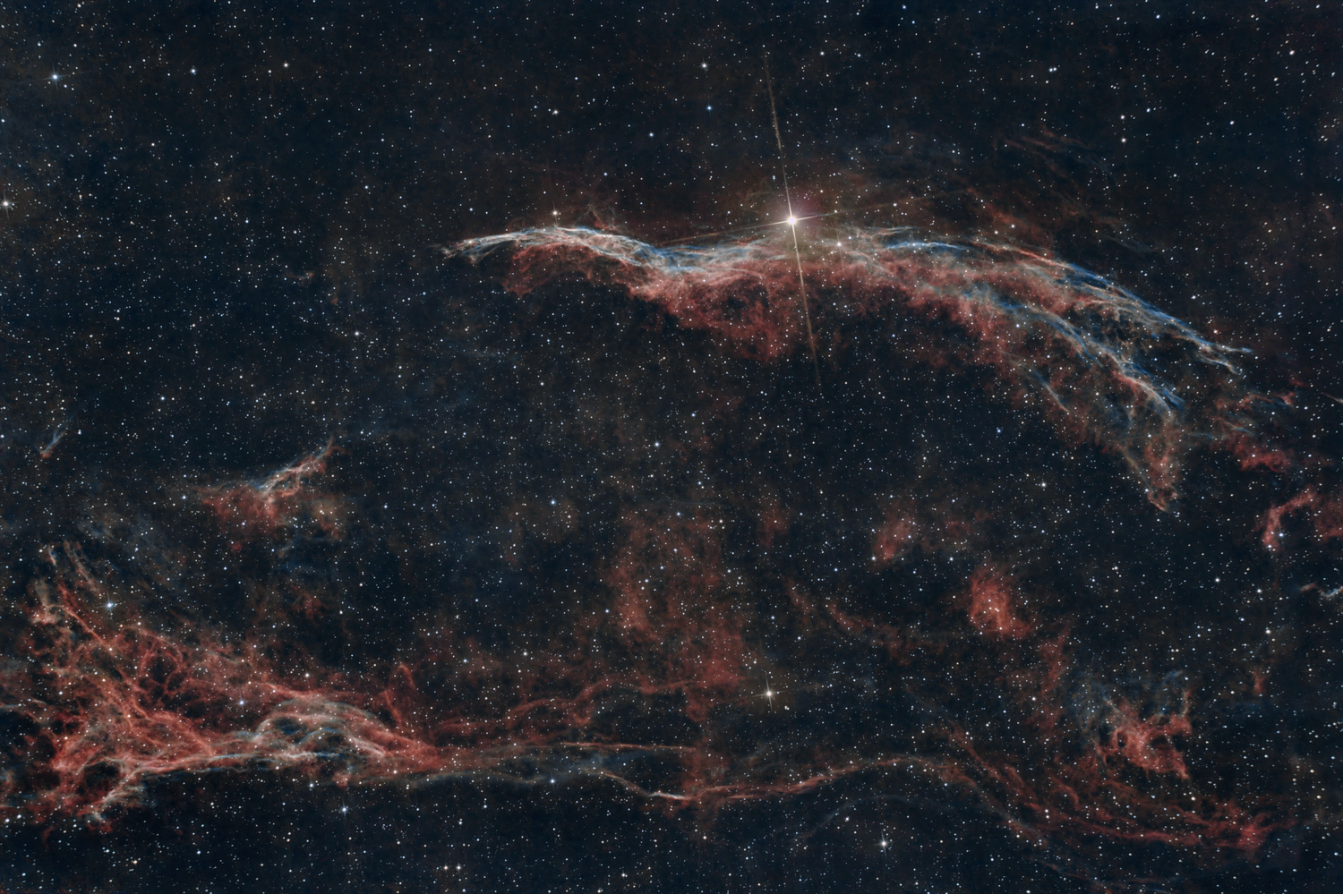 Bonjour à tous !!! Toujours dans ma quête de perfectionnement au niveau du traitement, voici celui de ma petite dentelle Pour le coup , par rapport à mon croissant qui m'a donné pas mal de fil à retordre il y a quelques jours…, je ne suis pas trop mécontent de cette première version Mais je veux bien vos remarques et conseilles d'amélioration. Pour le traitement j'ai suivi ceci ( SIRIL) : - Empilement - Extraction du gradient - étalonnage des couleurs par photométrie - Transformation Ashin ( que j'ai sauvegardé de coté pour une recomposition avec une "starless") - Etirement de l'histogramme ( en mode auto et j'ai rien retouché juste après, j'ai laisser le résultat tel quel ) - Création de la straless ( avec starnet ) - ouverture de la starless dans SIRIL + Reduction du bruit (avec GraXpert) + légère transformation de la courbe +Extraction bruit Vert - Recomposition d'étoile ( avec un peu d'étirement point noir sur le coté "Ashin") Pour la technique : 121*240 secondes skywatcher 150/750 eq3-2 motorisé lunettes guide 50mm avec caméra T7M Canon1000d partiellement défiltrer Correcteur de COMA MPCC Maxfeild 0.95x4 points