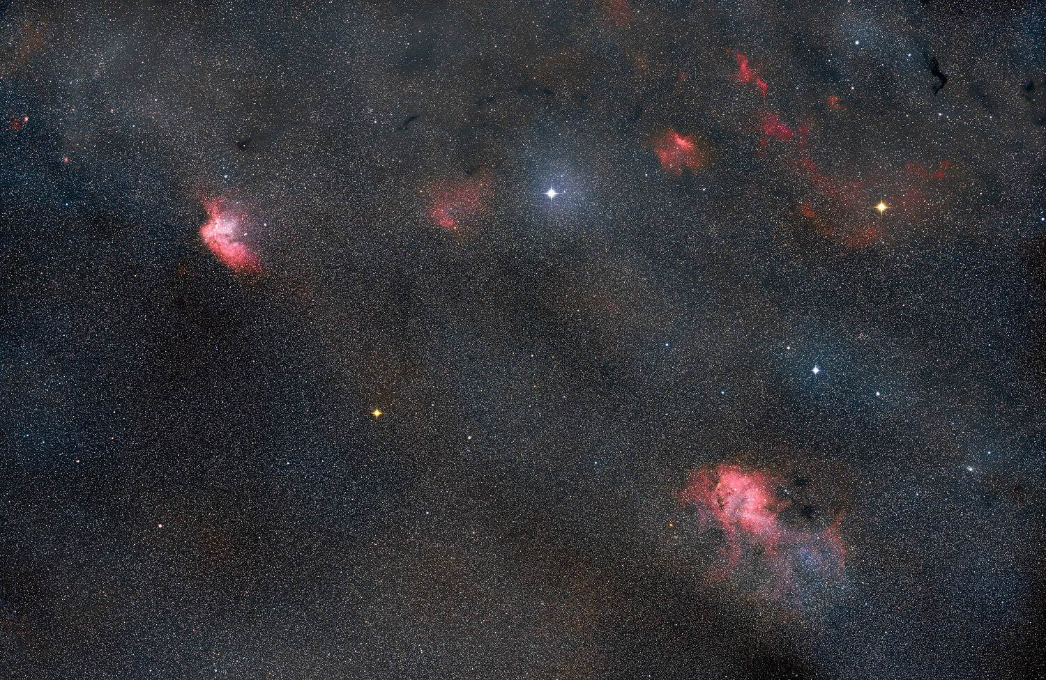 Bonjour tout le monde, Voici un grand champ de la zone Sorcier-Lion, au Nikon Z6 (défiltré Astrodon) + Antli Triband RVB sur l'Askar SQA55 (le tout posé sur l'Umi 17R) ! J'ai pris goût à ces champs que j' navais jamais vraiment fait du coup, en attendant de traiter et poster tout ce que j'ai en retard (au secours...). Voici donc 2 nuits (courtes évidemment) de 4-5 Juillet, pré-traité manuellement sous Siril par sessions puis assemblage du tout. 100 Poses environ de 240" à 800iso, un peu moins de 7h car passages de nuages et donc poubelle pour une partie... Traitement pix assez "droit" classique avec une réduction d'étoiles car ça fourmille vraiment ici ! Ajustements PL 8 puis PS pour denoise/pikes/export. La voici ! (clic-droit pour full)4 points