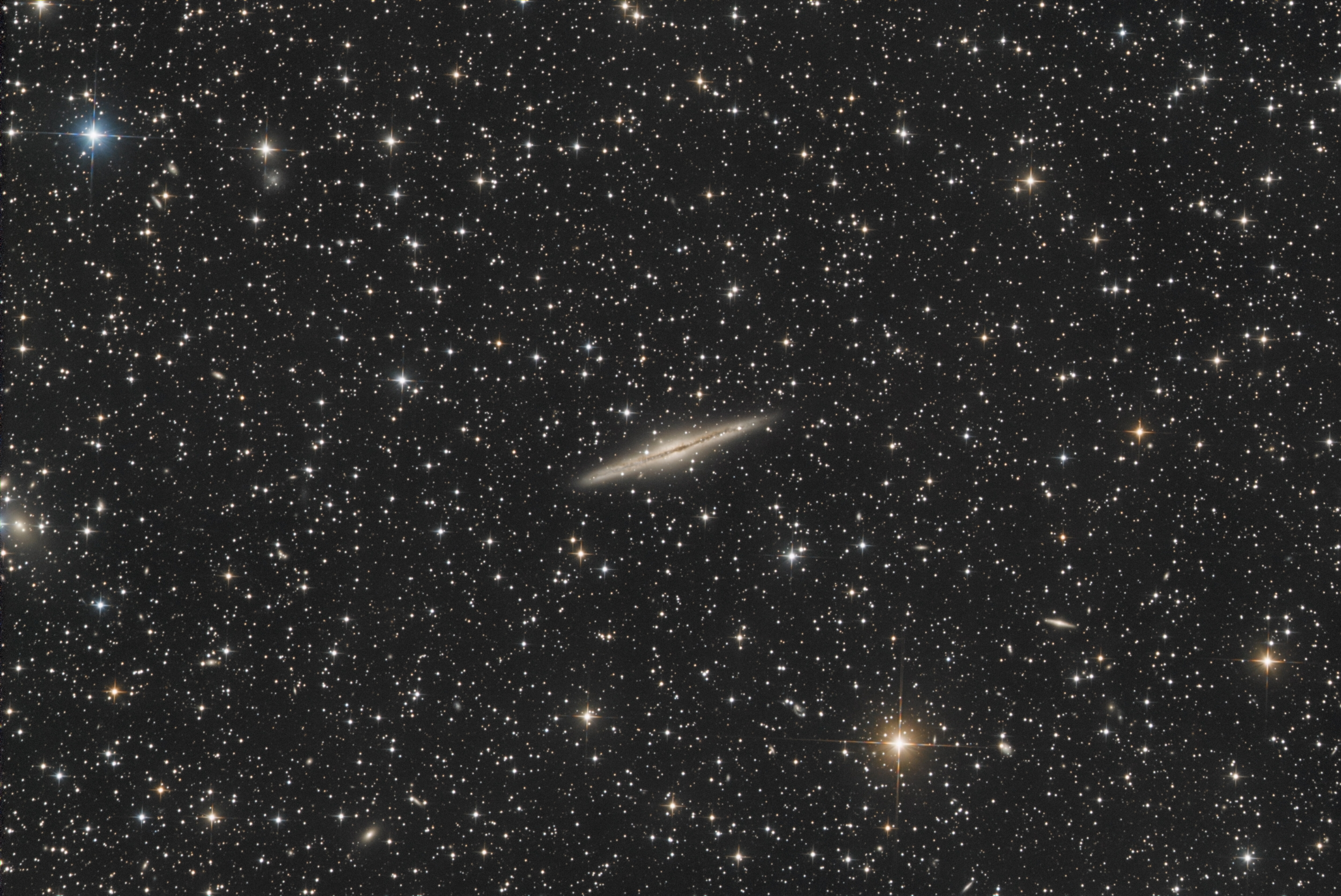 Bonjour, Voici un autre type d'objet pas souvent imagé (il faut dire qu'il y a de quoi). Les galaxies du groupe local mais plus particulièrement les galaxies naines. Voici un lien d'un site fort interressant (il ni a pas que les galaxies du groupe local) : https://www.stellar-journeys.org/LocalGroupTour.htm#TopIndex Donc voici un exemple de galaxie naine du groupe local Androméde VII prise au C8 reduc 0,63 et asi 585MM 1h de pose à raison de 40x90s on l'entreaperçois au centre : Un Crop pour mieux la centrer et surtout avec une rotation pour la comparaison avec les catalogues d'Aladin : Et 2 copies d'écran pour voir la galaxie faiblement (meme si mieux détaillée) Amicalement1 point