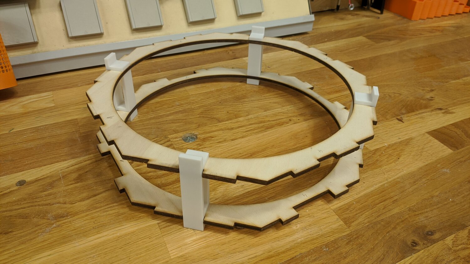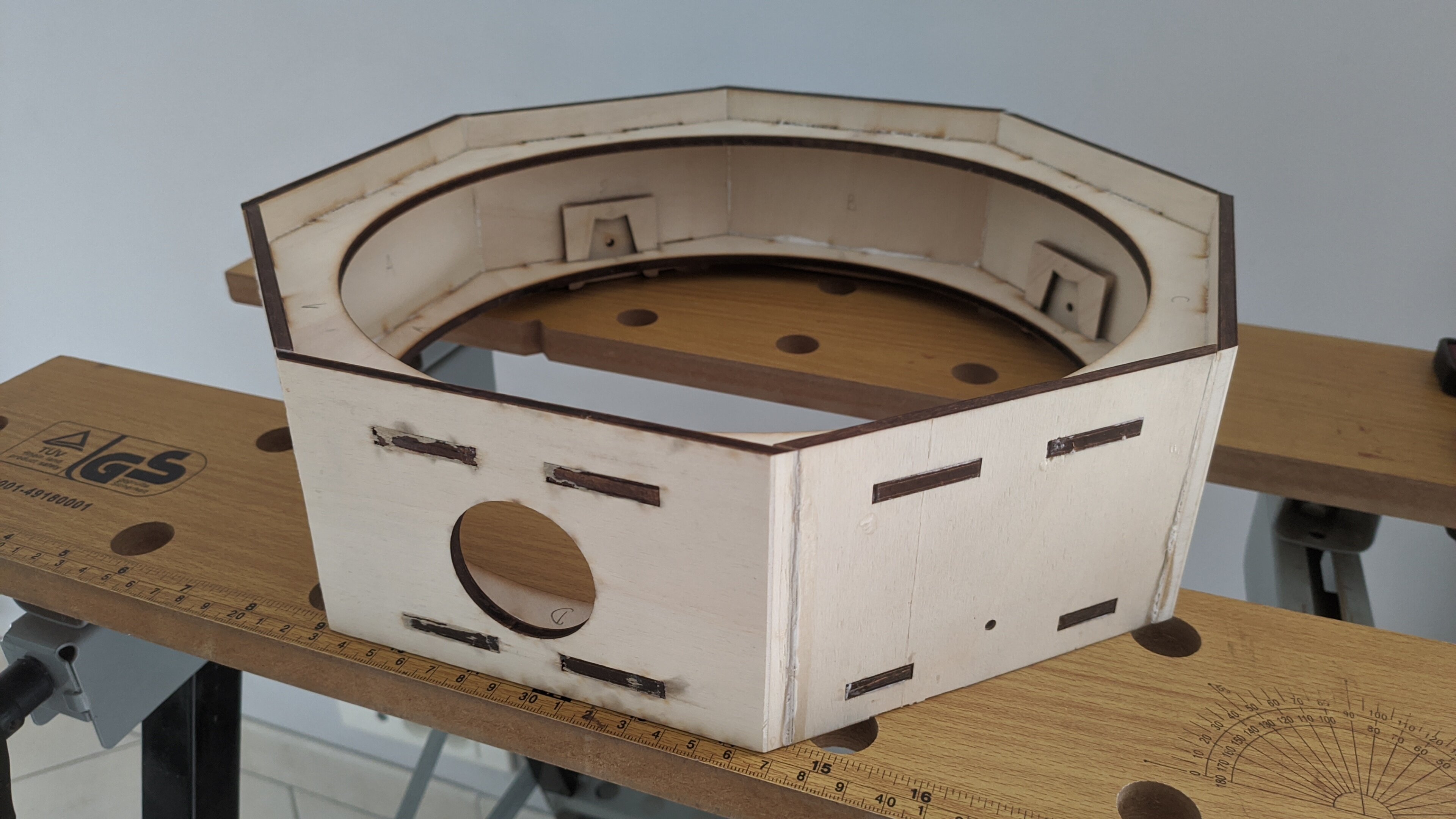 Quelques nouvelles avancées hier avec désormais les plaques de la cage secondaire poncées aux bonnes dimensions avant collage : Les plus attentifs auront remarqué un problème sur l'angle "au fond" de la photo. En effet, je me suis trompé de sens de ponçage sur un côté d'une des faces et je m'en suis rendu compte une fois que c'était trop tard, avec trop de matière enlevée 🤦🏻♂️ Je vais donc devoir redécouper cette pièce avant de pouvoir passer au collage puisqu'il s'agit d'une des pièces sur lesquelles viendront les tiges carbone. A part ça, je suis content car l'assemblage se fait bien, c'est presque tangent partout et les derniers ajustements seront faits après collage. Tant que j'y suis, une photo des cales d'assemblage des diaphragmes en position : Ca fonctionne super bien, tout est d'équerre simplement en faisant pression sur les cales qui se font face et l'ensemble est transportable facilement sans que ça bouge d'un poil. Ca pourrait aussi être utilisé pour les personnes qui font "à l'ancienne", sans découpe laser, avec positionnement vertical comme il faut. Je partagerai le modèle si ça en intéresse. Prochaine étape donc, redécouper la pièce poncée à l'envers et coller les V de serrage sur les 3 autres faces !1 point