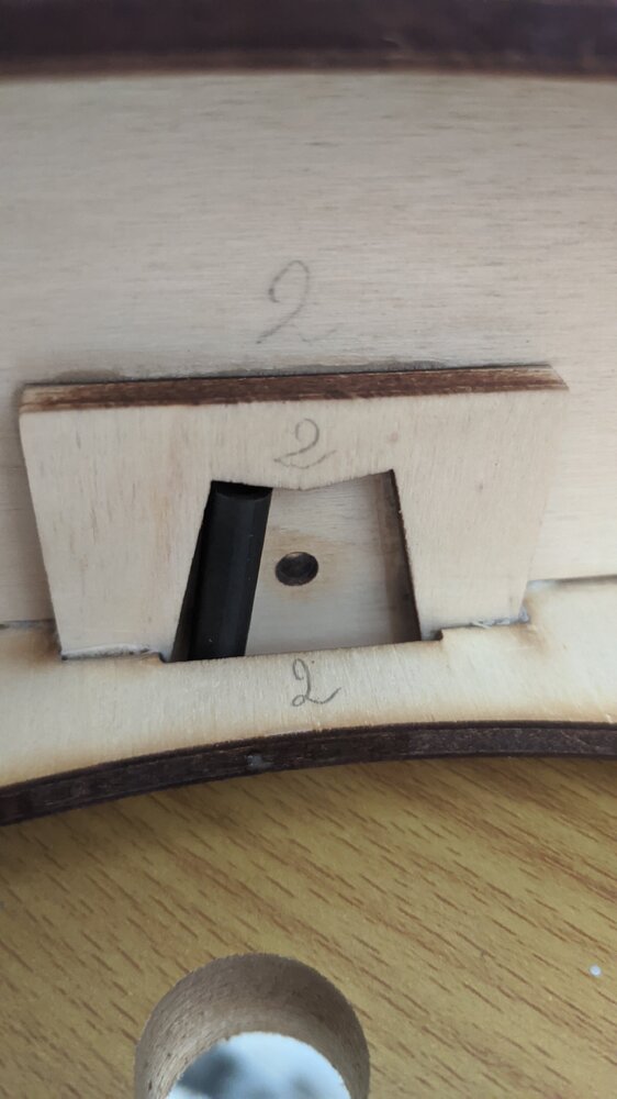 Bon... Finalement, les cales ont un peu collé 😅 Probablement car j'ai pris de la colle expansive qui a dû déborder à partir des espaces entre pièces. Pas bien grave, j'ai fini par réussir à les décoller sans dommage, soit en tirant/tournant doucement mais fermement, soit en passant un cutter entre la cage secondaire et la cale pour retirer la colle qui avait pris. J'ai ébavuré tout ce qui est à l'extérieur des octogones, il me reste quelques débordements à retirer à l'intérieur et ça sera bon pour la partie bois de la cage secondaire (avant finitions, évidemment) ☺️ Petite vérification au passage que les tubes de 6 mm passeront sans problème afin d'avoir une installation aisée. C'est tout bon 👍🏻 Pour info, le petit décroché fait 1.5 mm de profondeur, ce qui donne une distance totale de 6.5 mm entre ce décroché et la face verticale de serrage. Pas besoin de plus, le jeu est bien suffisant ainsi (voire un peu grand peut-être). Ce soir je m'attaque à la valise : ajustage des faces à emboîter, montage à blanc et collage. J'espère que ça sera bon d'ici la fin du WE sur ces points. Ensuite il faut vraiment que je passe commande de la quincaillerie et autres pièces pour pouvoir avancer sur la suite. C'est prévu ce WE aussi. Il faut que je profite de ma motivation avant qu'elle ne retombe ! 😁0 point