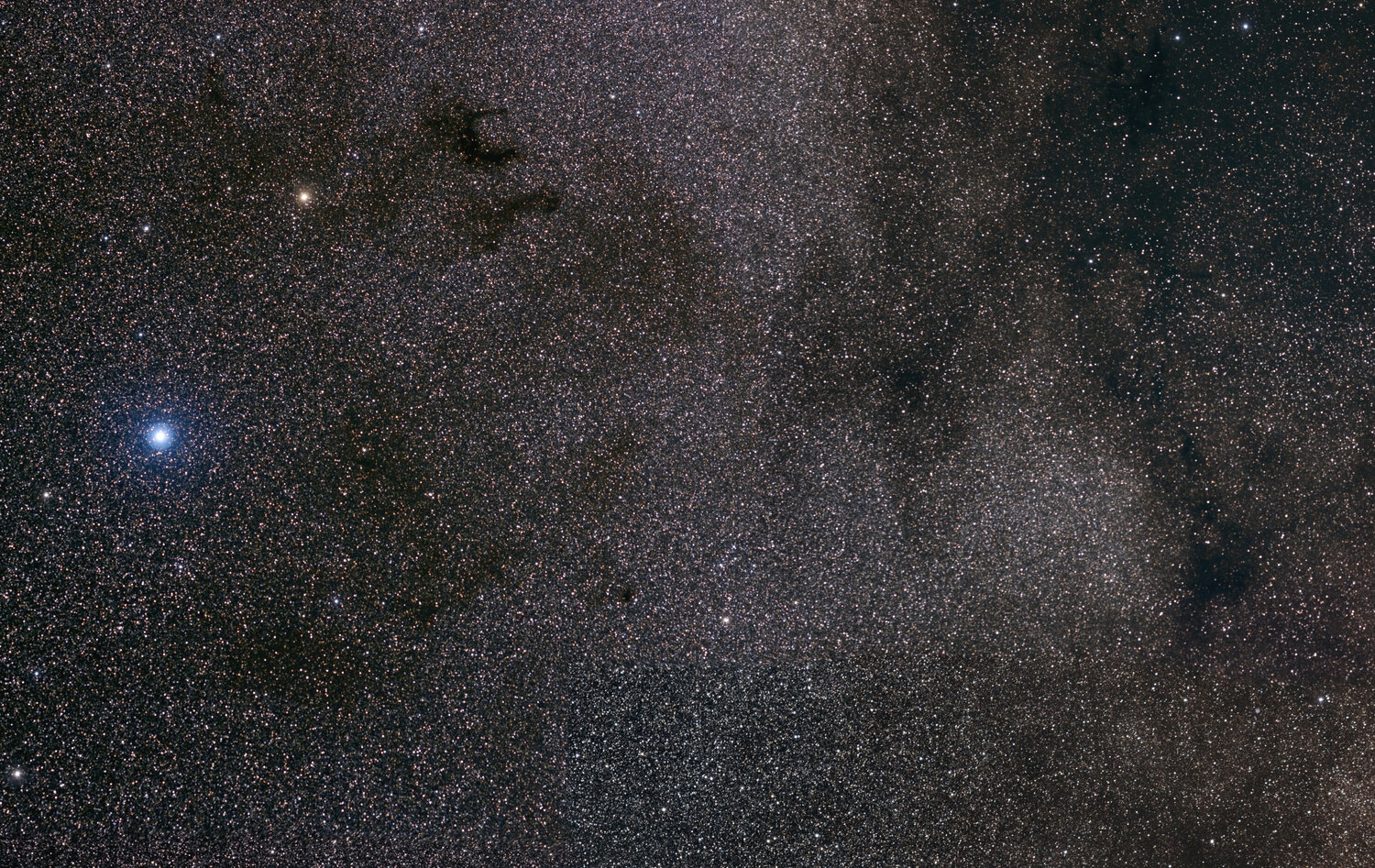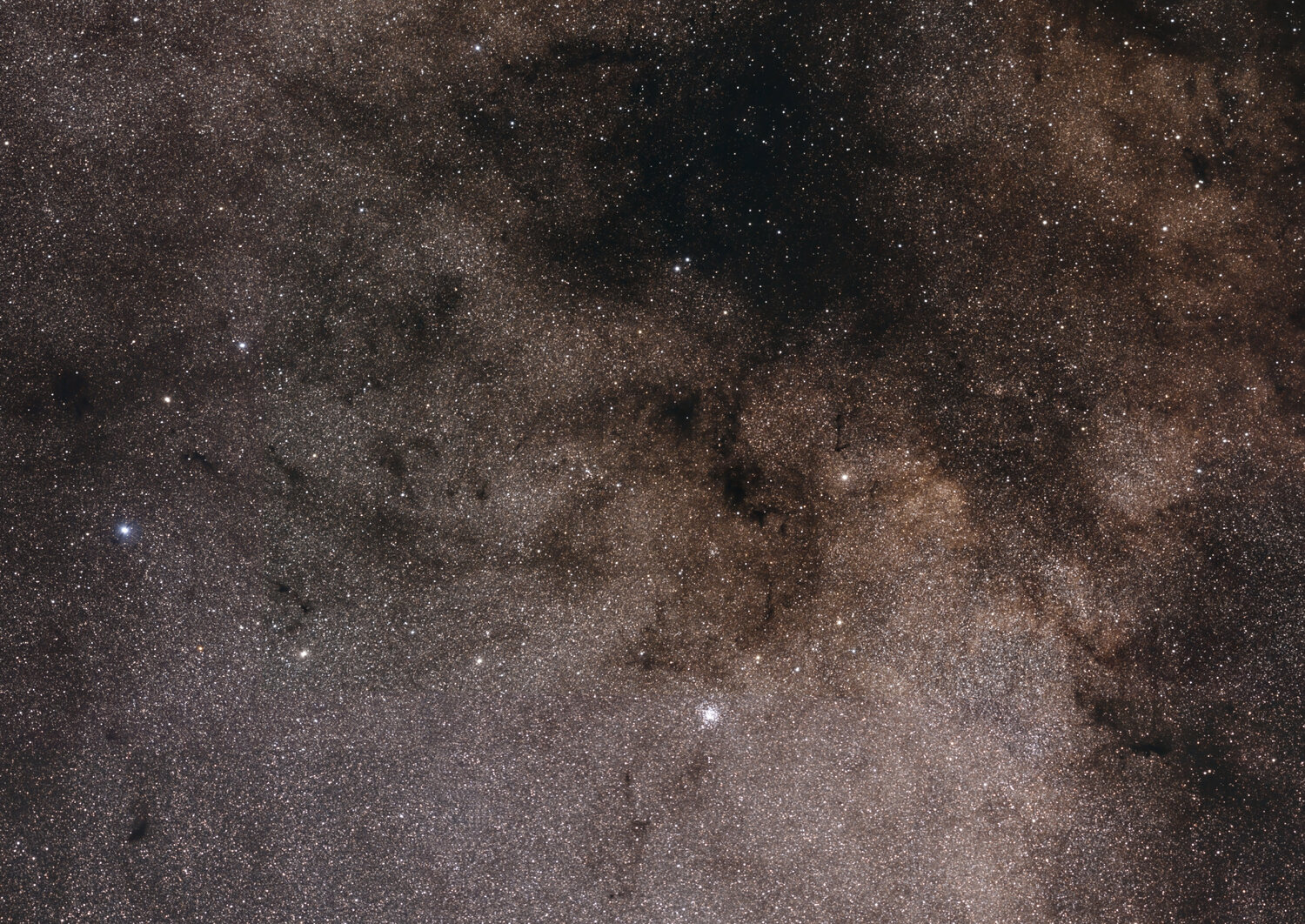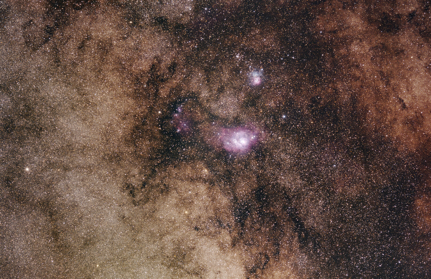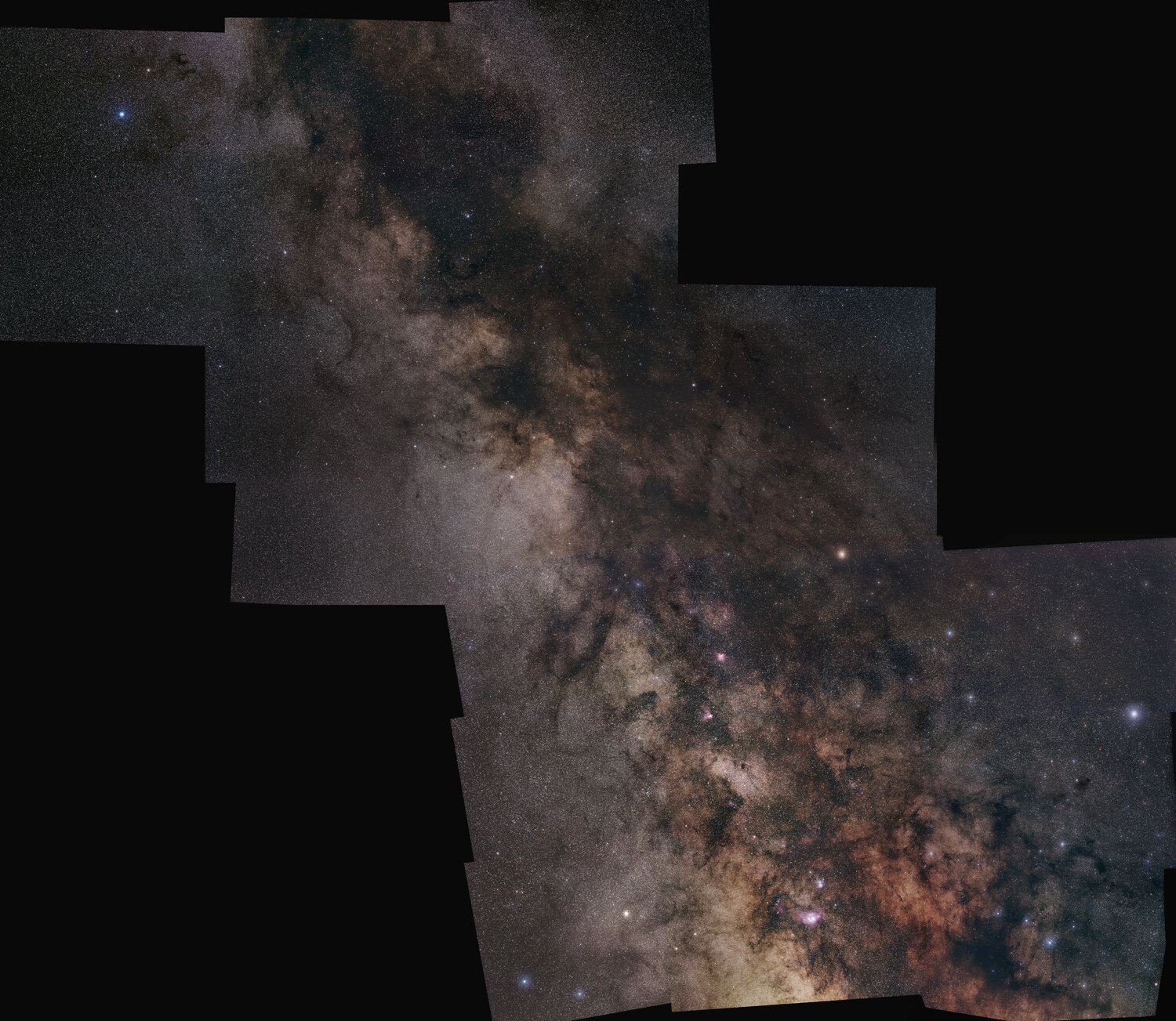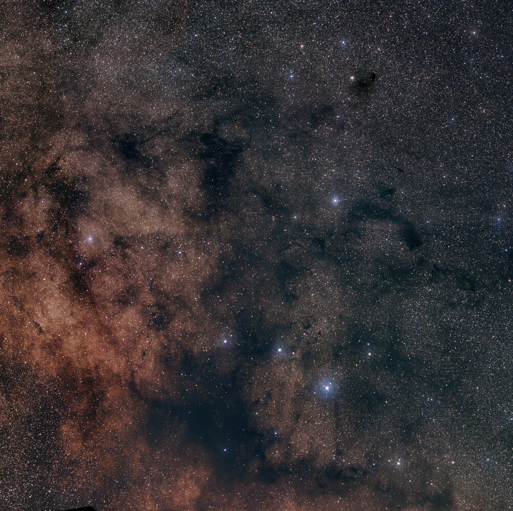 Voici une Mosaique qui m'a pris des semaines a assembler. La voie lacté de Altair jusqu'a son coeur, juste au sud de M8 Shooté cet été sur quelque nuits, le traitement a été beaucoup plus long. environ 1h par panneau, pose de 20 a 30s iso 3200 sur mon sony A6400 non defiltré (mon appareil de photo diurne) avec le samyang 135mm, sur star adventurer. Le fichier complet fait 4Go. j'ai compressé, jpeg et divisé la dedinition par 2, pour arrivé a une petite image réduite de 14000x12000 pix. Quelques extrait d'abord de zones interessante, puis la full pour se balader ! Celui qui compte les étoiles a gagné une biere !! A moins d'utilisé une IA , ca n'arrivera pas. Altair et ses nuages de poussieres: Le haut de l'écu de Sobieski: Des nuages sombres et amas La nebuleuse sombre du cheval : A la limite sud de ce qu'on peut voir en France. Le centre de la voie lacté en bas (le plus lumineux) et biensur M8, M20, des nebuleuse sombres, poussieres, amas... Et pour la balade: ne vous perdez pas, laissez des petits cailloux derriere vous en avançant !19 points