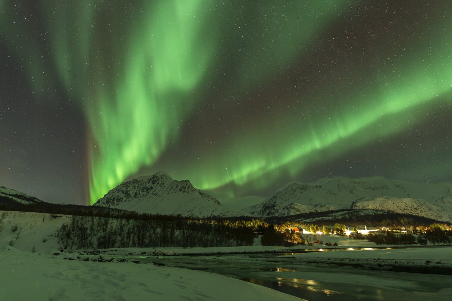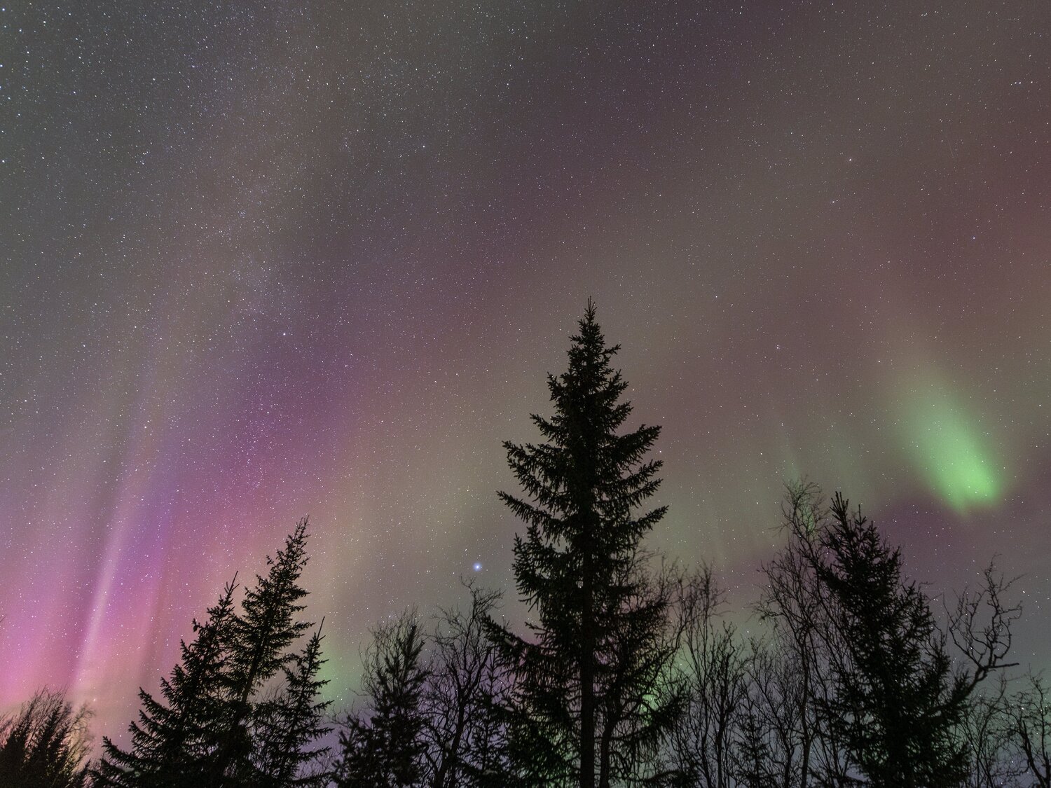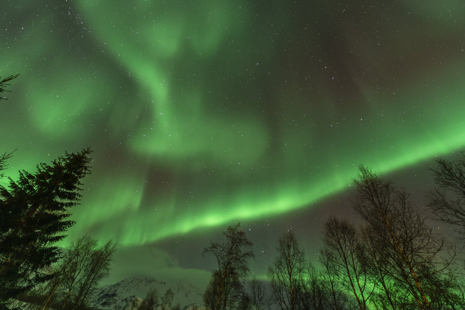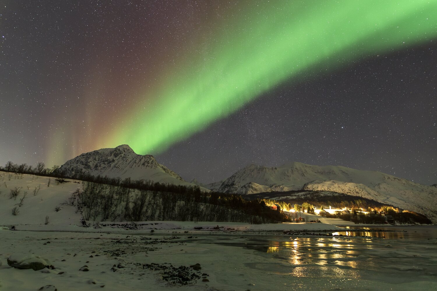 Salut à tous, Me revoilà après une longue pose. Un problème de connexion à mon compte m'a empêché de l'utiliser et donc de poster. Je suivais les posts en mode camouflage 😄. J'avais presque laissé tombé l'idée de récupérer mon compte mais j'ai pu relancer un modérateur via un nouveau profil et il a pu débloquer la situation. (il ne fait pas bon avoir une adresse mail outlook 😉). Pas mal d'images en retard à vous montrer! Je vais commencer par un retour concernant le voyage que j'ai effectué en Norvège fin janvier dernier pour chasser les aurores boréales. Il s'agit de mon 2ème voyage après celui en Suède l'année précédente. (quand on y a goûté🤩) Je pars avec 3 collègues du club astro (le GAAC) . Pour maximiser le ‘‘temps d’aurores’’ potentiel, nous partons un peu plus tôt dans l’année, un peu plus au Nord, et un peu plus longtemps qu'en Suède (10j). Départ le 24 janvier au matin. Après une première partie de voyage un peu stressante entre Lille et Paris Charles-de-Gaulle (mon tgv à Lille ayant été annulé!), nous décollons pour Tromso avec une arrivée prévue dans le milieu de l'après midi. Nous n'avons pas prévu de rester sur Tromso car c'est une ville avec une forte pollution lumineuse. Le voyage se divisera en 2 parties: un premier séjour vers Koppangen et le second à Skibotn: Le 1er gite réservé est situé à 2h30 de voiture de Tromso. La route est longue… Un dernier effort sur une chaussée glacée qui serpente au bord du fjord et nous arrivons, près du port de Koppangen. À peine sortis de la voiture et les phares éteints, une arche aurorale nous saute aux yeux ! Les valises sont déchargées à la hâte et quelques minutes plus tard, nous sommes prêts! Après quelques photos rapides qui servent à nous remettre dans le bain, nous constatons bien vite que sommes gênés par les lampadaires environnants, y compris ceux de notre location que nous avons du mal à éteindre. D’une manière générale, les norvégiens sont peu enclins à conserver la noirceur du ciel, tout est très éclairé, les routes, les bâtiments, les maisons, jusqu’à la moindre cabane... Peut-être est ce pour conjurer l’obscurité quasi permanente de cette période de l’année ? Nous n’aurons pas la qualité de ciel nocturne d’Abisko et il faudra s’en contenter. Sans avoir pu faire de repérage en plein jour, nous partons chercher l’obscurité… À proximité de notre chalet, un chemin mène vers le bord de mer en contrebas où nous avons repéré une plage sur les cartes satellites. L’arche aurorale semble émerger d’un haut sommet montagneux, comme un volcan en pleine éruption: Soudain, la partie inférieure de l’arche s’agite et ondule. Quel début de séjour ! L'activité se calme. Nous en profitons pour rentrer et nous installer. Un repas est vite avalé alors que le ciel s'embrase de nouveau: L'activité se calme peu à peu. Il est temps de rentrer et de se coucher. Cela fait plus de 20h que nous sommes debout! Le temps en Norvège s'est dégradé. Après une seconde nuit à espérer une trouée et deux tentatives de sorties infructueuses, nous espérerons que le ciel va enfin se dégager pour cette 3ème nuit . Je décide de m'installer à côté d'une rivière que nous avons repéré en journée à coté du logement. Les nuages se disloquent enfin. L'activité aurorale n'est pas forte mais on retrouve de belles ondulations et de délicats piliers qui font penser à des rideaux de pluie: Durant la soirée, des voiles arrivent et coïncident avec la baisse de l'activité. Nous rentrons, heureux d'avoir pu voir à nouveau ce spectacle. 4ème jour : Le temps est dégagé. Il est à peine 15h30 mais Jupiter et vénus sont déjà visibles . Le ciel parait encore clair mais le groupe souhaite quand même sortir rapidement. Nous prenons la voiture car nous avons repéré un spot photo juste à côté de la distillerie « Bivrost » qui est la plus septentrionale au monde. Il n’y a qu’un petit quart d’heure de route mais l’excitation monte d’autant que l’aurore est déjà bien visible malgré la clarté du ciel. Arrivés sur site, il n’y a plus aucun doute, c’est le feu ! Le phénomène, au crépuscule, est vraiment magique ! Il est à peine 17h30 mais l'heure bleue a laissé place à la nuit noire. Nous décidons de remonter en voiture et de laisser la distillerie pour un chemin en forêt. L’ensemble du ciel est baigné d’une lueur verdâtre. C’est sûrement le résidu de l’intense activité que nous avons vu plus tôt en bord de mer. Le ciel tend à se voiler, l’aurore se calme également. Avant de rentrer, nous faisons une dernière halte au port de Koppangen. Là bas, la pollution lumineuse est forte et les lampadaires nous contraignent à un seul point de vue : un bateau amarré au milieu de la baie. Dernière nuit sur le lieu du 1er gîte avant de partir pour Skibotn. Pour l’instant, le ciel est couvert sur toute la Scandinavie. Des éclaircies sont annoncées un peu plus tard. Les caméras en Alaska montrent un activité aurorale forte. Dans la soirée, les touées apparaissent et coïncident avec une diminution de l'activité. Nous aurons quand même droit à un chouette spectacle. Nous arrivons sur Skibotn en début d'après-midi sous un ciel clair. Les prévisions météo pour la fin du séjour ne sont pas bonnes donc il faut profiter de la dernière soirée. Nous sortons en fin d'après midi mais les aurores se font attendre. Un peu dépitée, l’équipe se résigne à rentrer. A peine installé au chalet, je décide de jeter un œil dehors et c'est le feu ! Nous courrons vers le fond du camping en espérant trouver un endroit sans trop de lumières. Nous n’avions pas eu le temps de repérer le coin et, fort heureusement, le lieu est assez isolé pour profiter pleinement du spectacle ! Images réalisées au canon 6d astrodon/ tt artisan 11 mm/ irix 15mm/ sigma art 20mm. Bon c