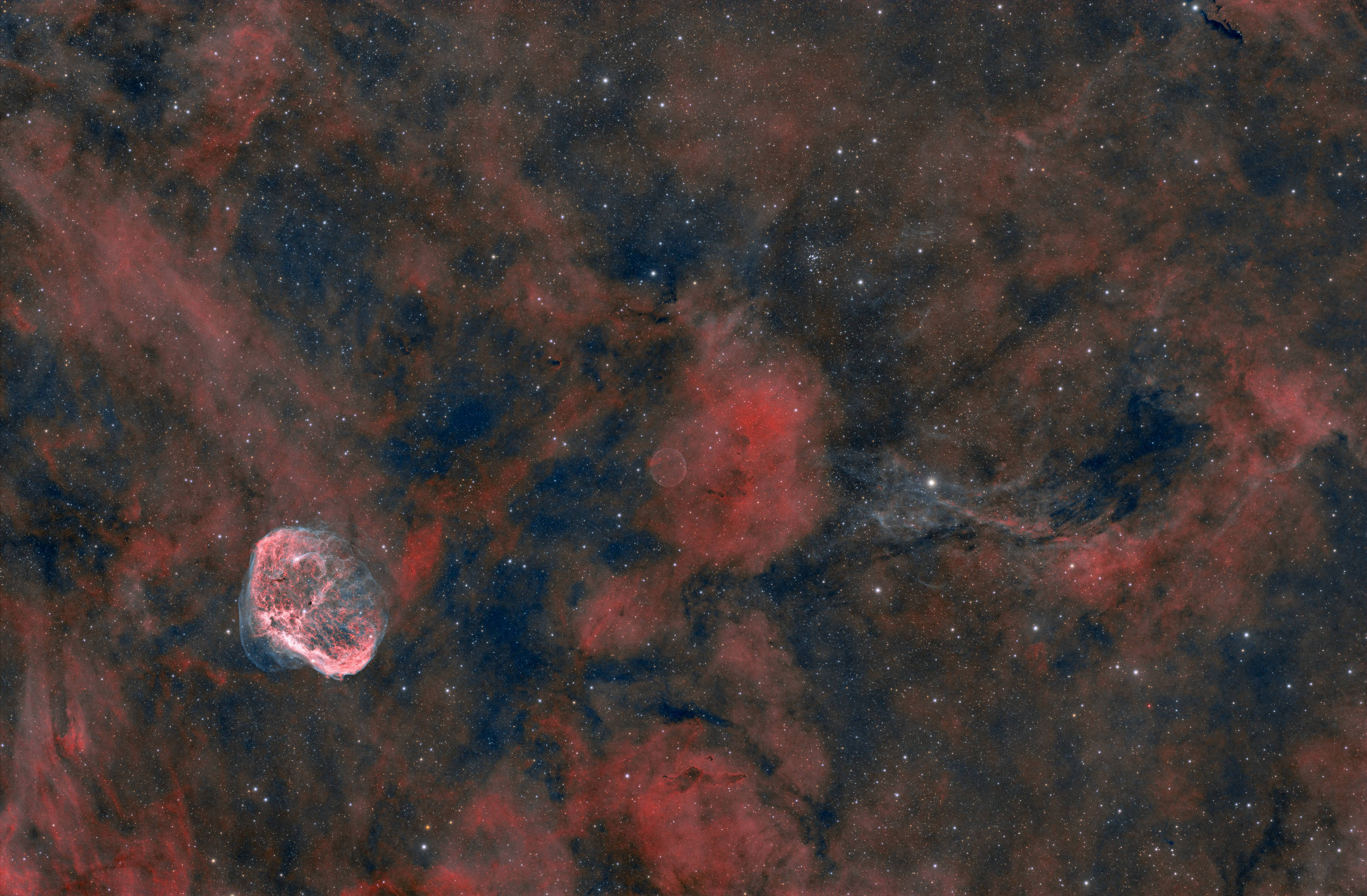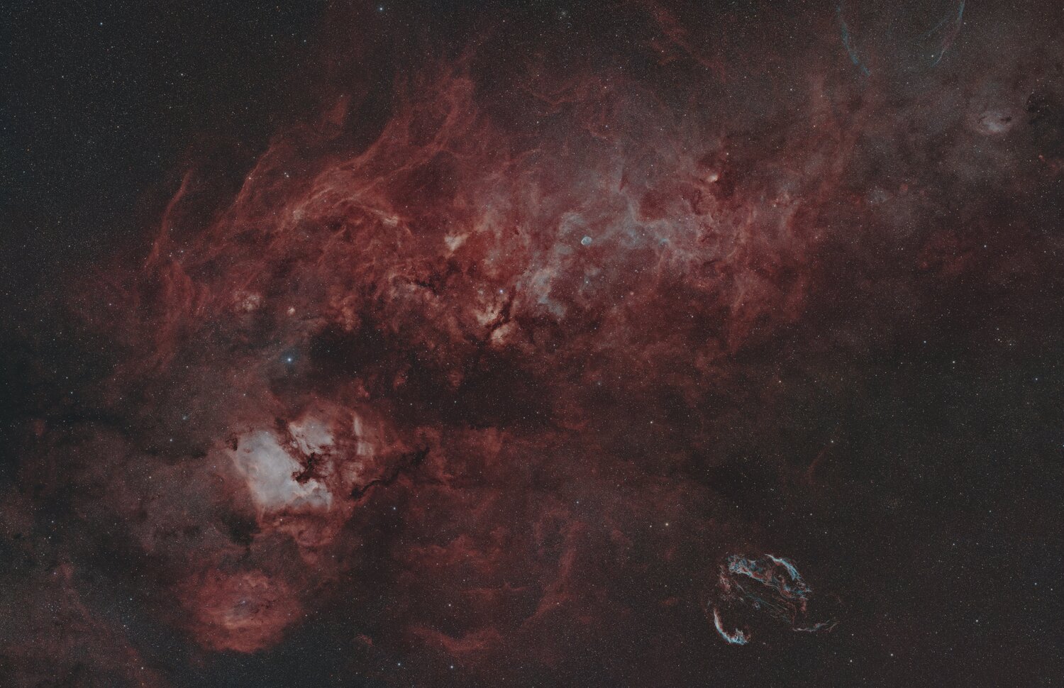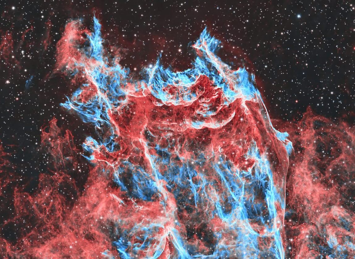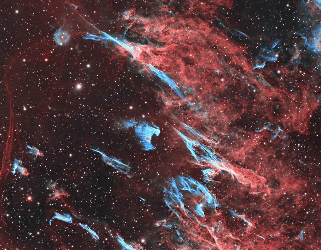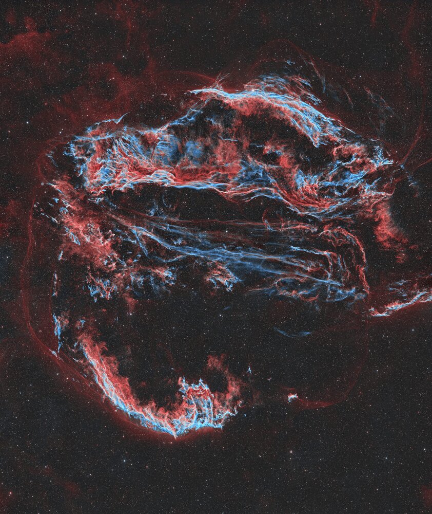 Ce post de Tazdevil ne pouvait pas me laisser sans réagir ! J'avais déjà une image cadrée serrée avec mon ancienne conf ccd, mais j'ai tout repris avec ma nouvelle 2600 sur la fsq85. Il y a 4 h en Ha, autant en O3 + quelques poses RGB pour les étoiles Siril, Graxpert,PS522 points