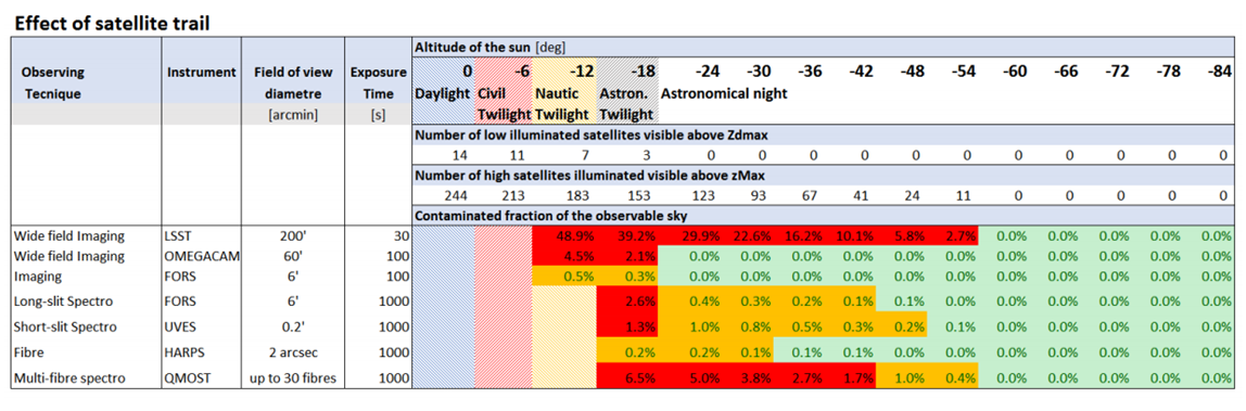 Effect of satellite trails - tableau récapitulatif. Crédit: ESO