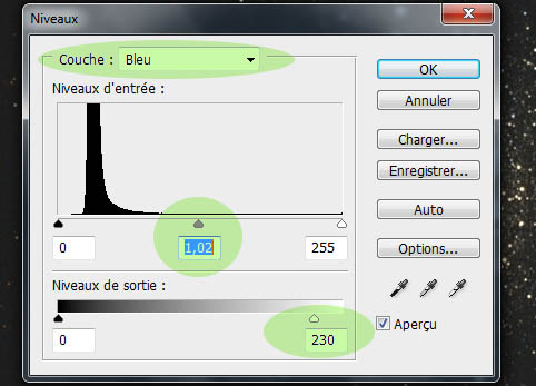 Pour réduire les étoiles, déplacez le curseur blanc des 'Niveaux de sortie' vers la gauche. Attention, vérifiez le fond de ciel, qui ne doit pas changer. Il sera probablement nécessaire d'ajuster le curseur des tons moyens pour corriger.