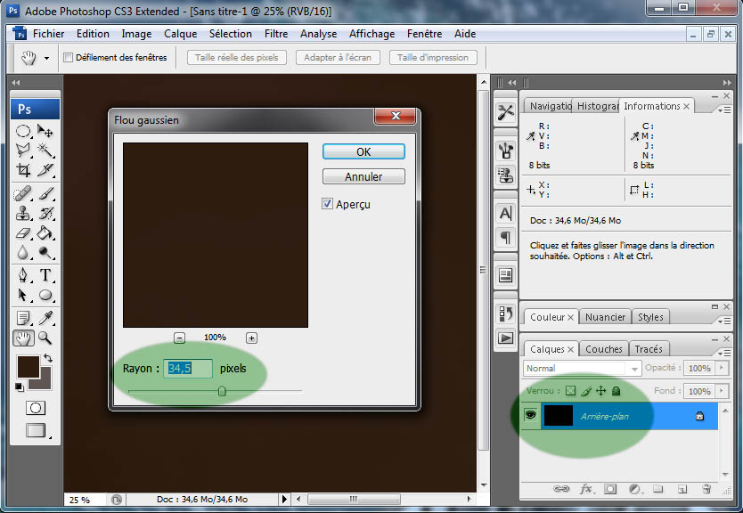 7. Menu ==> Filtre ==> Atténuation ==> Flou gaussien. Choisissez une valeur entre 30 et 60.