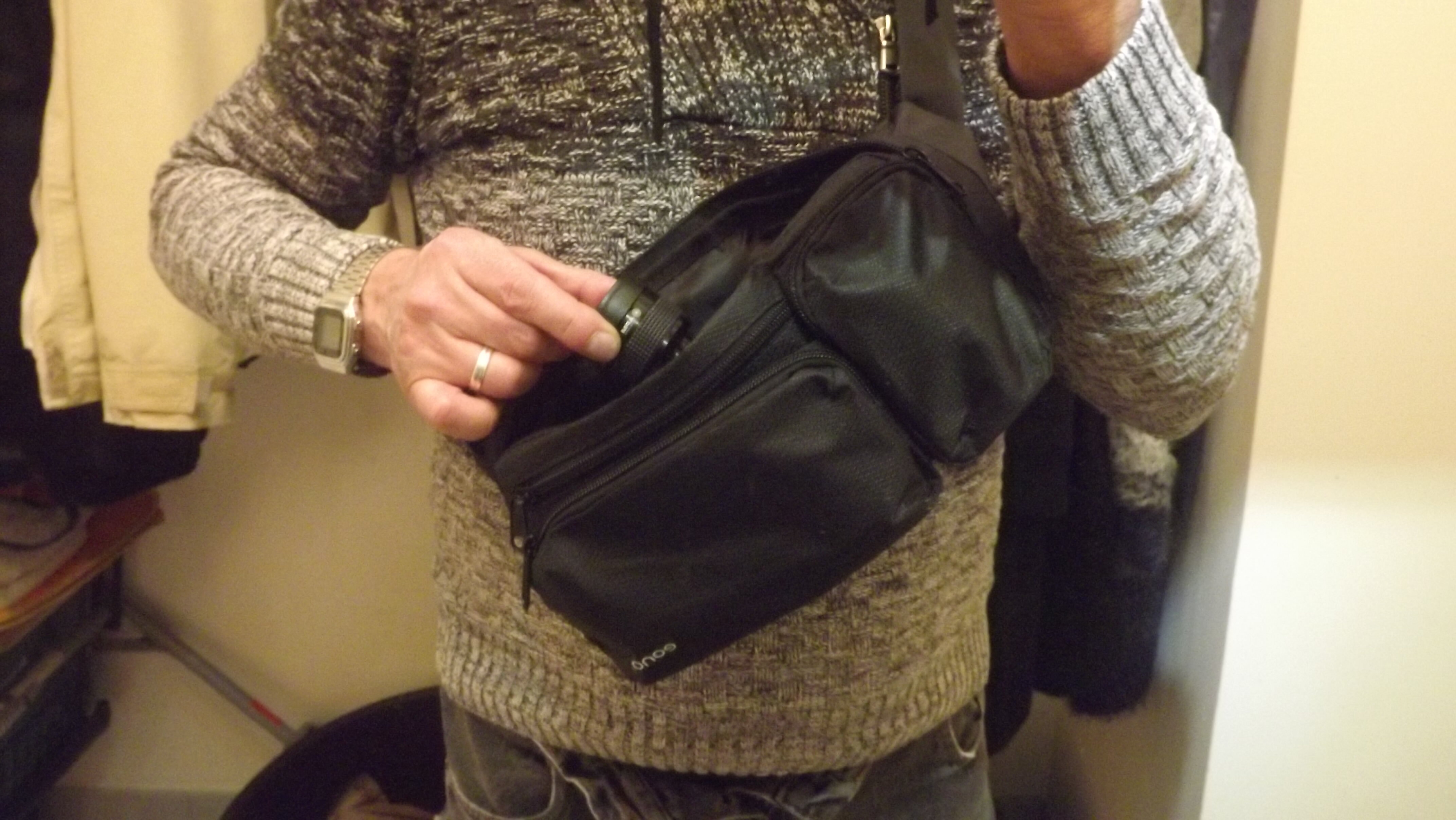 Une sacoche banane aménagée avec de la mousse pour ranger ses oculaires ( plus d'autres bricoles)