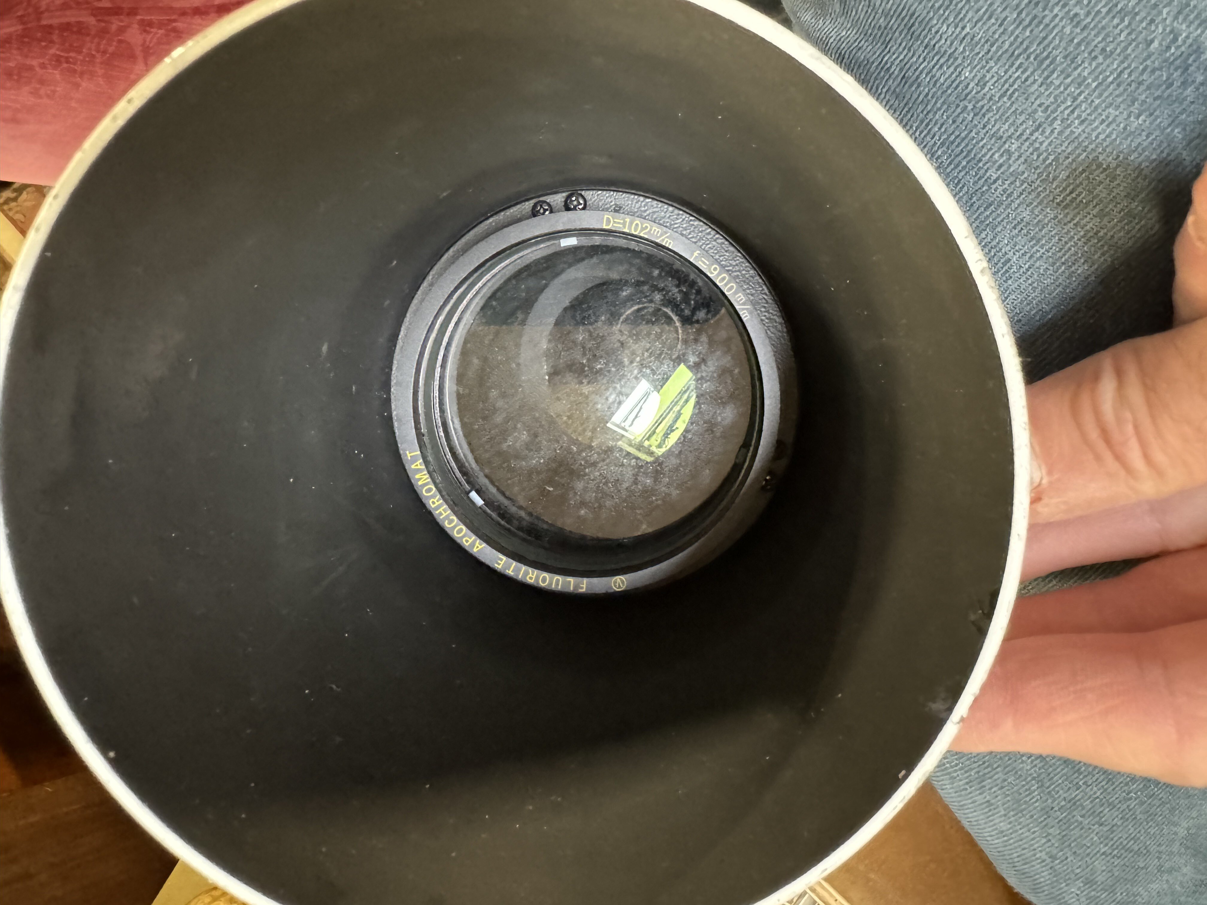 Bonjour la communauté, de retour aux étoiles je chine les PA et les enchères. Je suis tombé ces dernier jours sur interencheres.com sur une lulu bien connue pour ses qualités optiques il y a 30 ans une fluo Vixen 102S fd/9. Vendue sans monture, dans une caisse et assez défraichie à l'extérieure. Mise à prix 50 EUR, forcément ça attise ma curiosité...