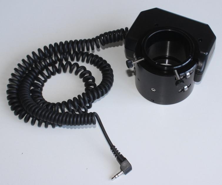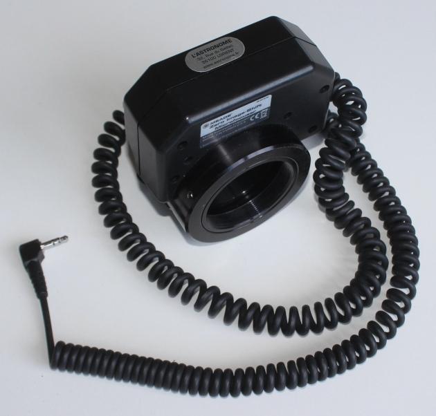 Raccordé sur le filetage de sortie SCT du telescope avec l'adaptateur fourni, et relié à la connectique de la monture, Il est piloté directement avec la raquette Autostar II ou Autostar III.