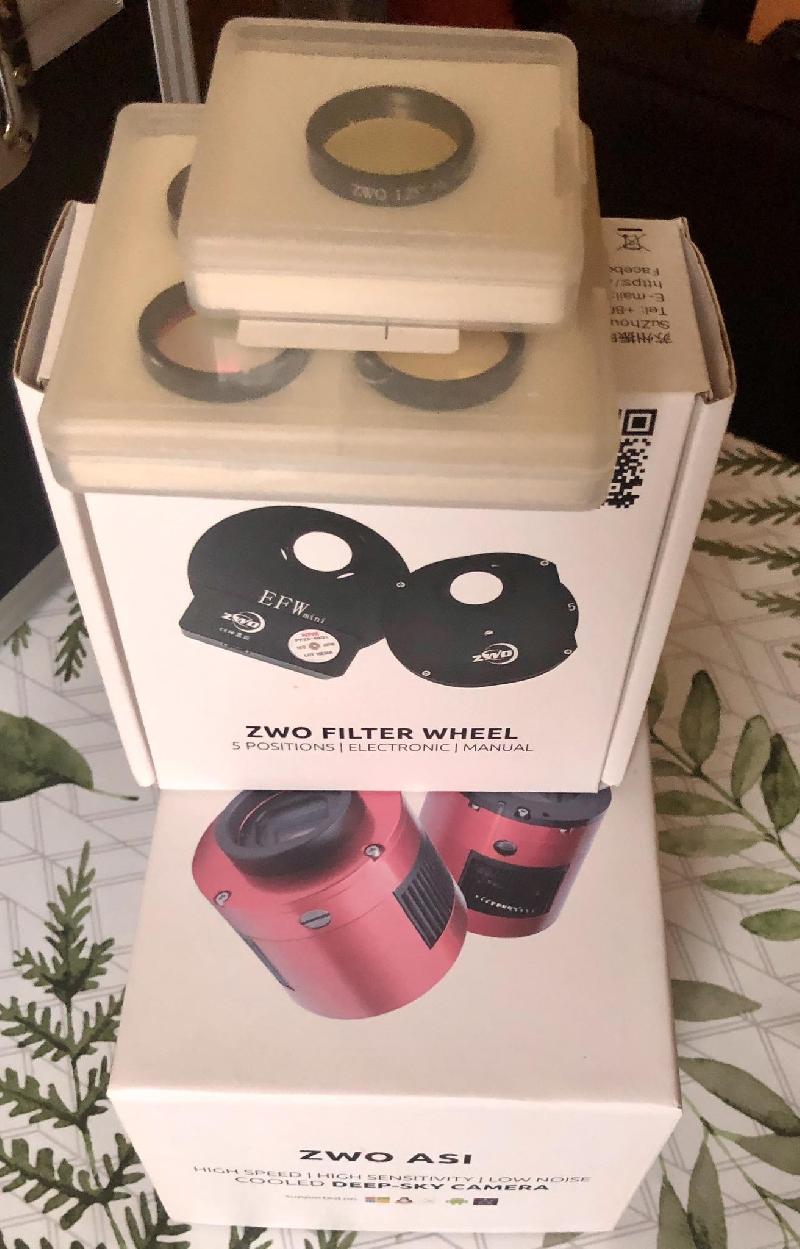 Suite a un changement de setup, Je met en vente ma camera refroidie ASI1600MM pro avec roue a filtres 5x31.75 et filtres ZWO LRVB et ZWO Ha 7nm. Tout est complet avec accessoires.