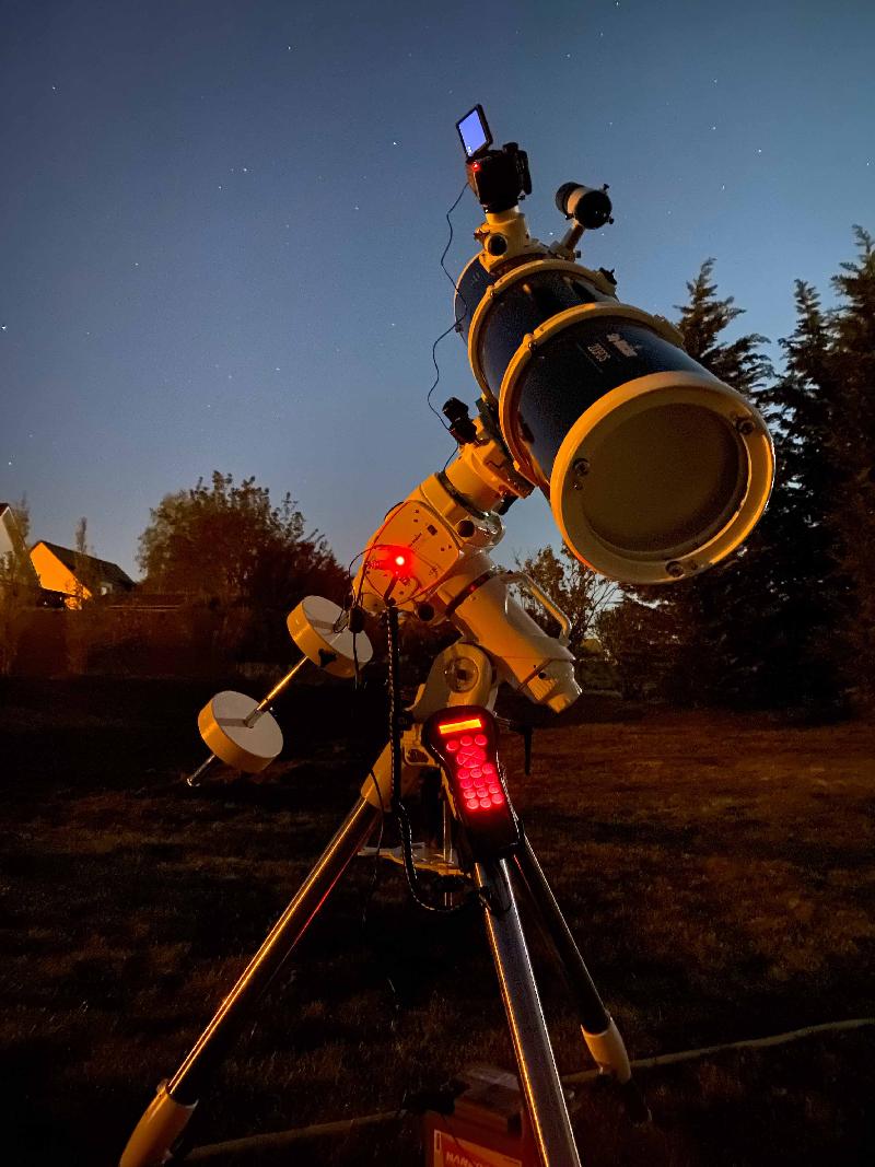 Aujourd'hui je mets en vente mon télescope Newton 200/1000 équiper du porte-oculaire Crayford démultiplié 10:1 sur SkyWatcher EQ6R-Pro