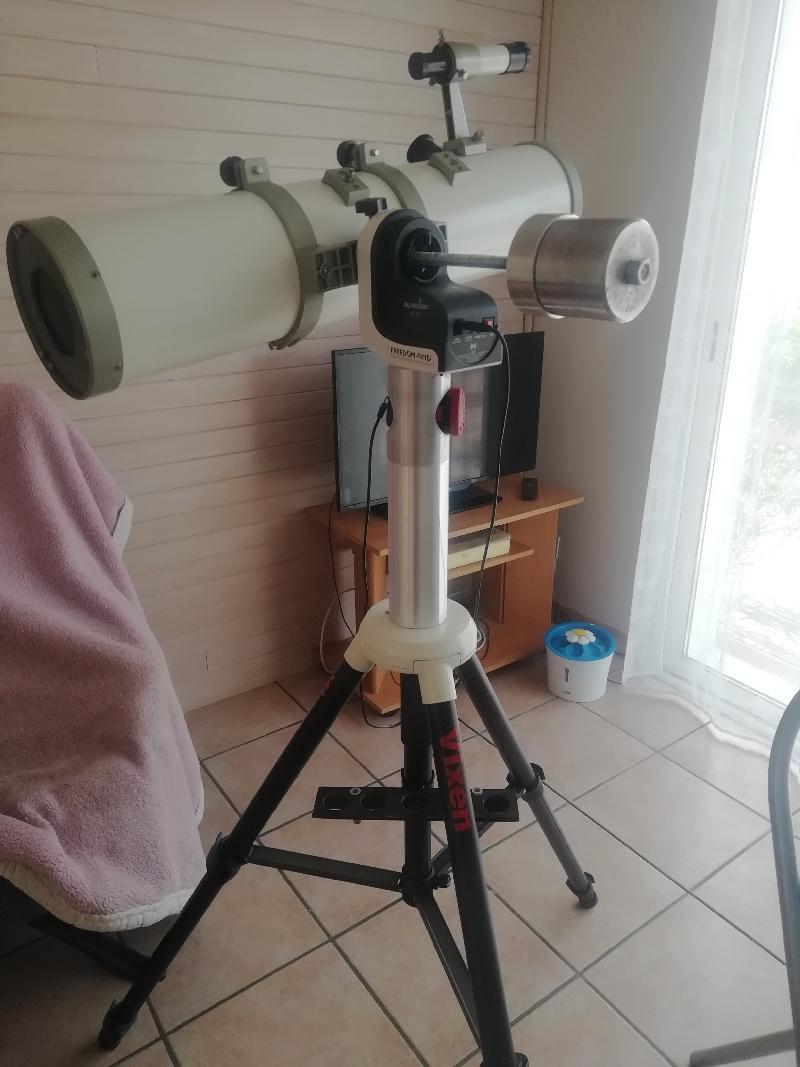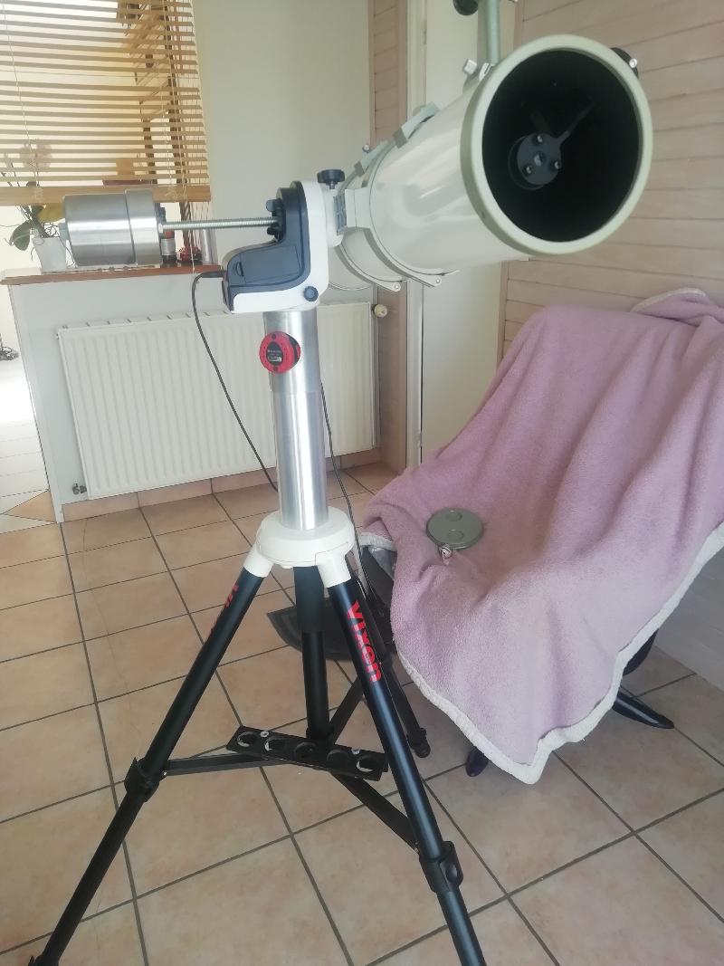 Je vends un tube vixen 135/720 très bon état avec mise au point hélicoïdal, très pratique. une monture Skywatcher az gti acheté neuve il y a 3 ans sur un trepied vixen TL130 plus 2 rehausse de 20cm et 10cm faites maison en inox. la monture se commande via l application synscan sur votre portable. il y a en plus des contrepoids. ensemble vendu sans oculaire. je vend l ensemble, à venir chercher sur place de préférence mais je peux me déplacer dans un de 100km. trépied valeur neuve 209€, monture valeur neuve sans le trépied 357€, le tube avec mise au point micro 130€. je vends l ensemble 400€.