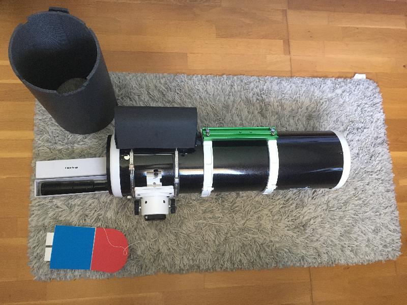 - Viseur Telrad Pierro Astro (avec un pare buée maison), son support maintenu sur le tube avec des collier en métals (avec mousse entre collier et tube pour ne pas rayer).