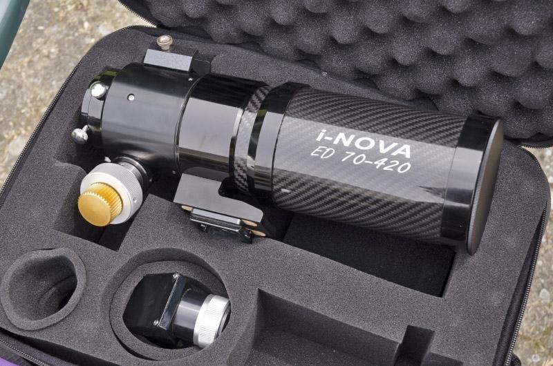 Lunette iNova 70-420ED carbone + correcteur Altair Astro Lightwave 0,8x + renvoi coudé Takahashi et accessoires.