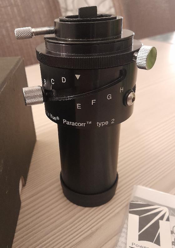 Je vends mon paracorr acheté a l'astronome n'ayant plus l'utilité de celui-ci. En excellent état, manque la vis d'origine de l'adaptateur 31.7 tombé dans l'herbe pendant une séance B| et remplacé par une de mon stock légèrement tordu mais fonctionnelle.