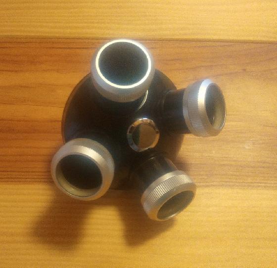 Le coulant d'entrée est de 31.75 mm. Le coulant de sortie pour les 4 oculaires est de 24.5 mm avec serrage annulaire.