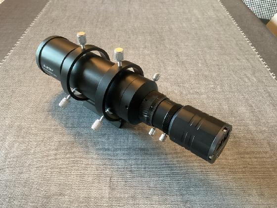 Avec , une caméra SVBONY 305pro , donc IMX290 mono quasi neuve (0 trace sur la caméra , 1 nano marque sur le nez 31,75mm ;) ) livrée avec le bouchon, la boîte , les câbles USB3 et guidage . Cette caméra permet bien évidement de la capture planétaire avec un débit d’image très rapide .
