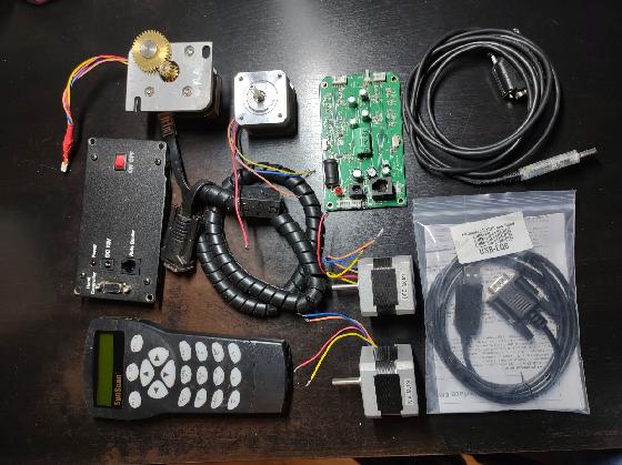 - 4 moteurs (2 RA et 2 DEC) tous testés, tous ok. Mais câbles dénudés et je garde le petit connecteur et la platine avec les pignons du moteur DEC.