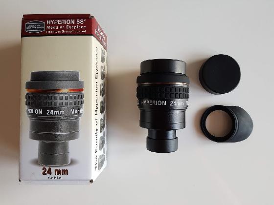 Je vends un oculaire Baader Hyperion 24mm champs 68°, dans un état neuf, avec boite, étui et caches.