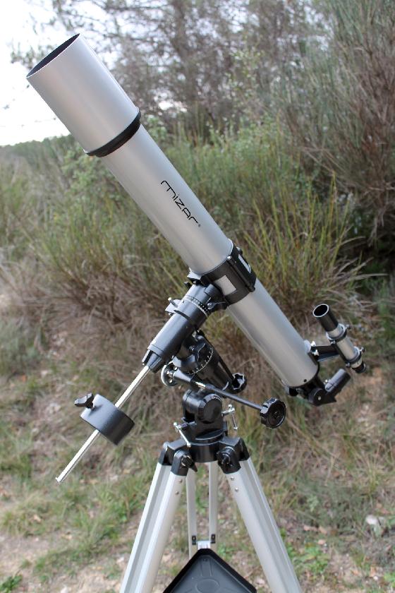 Fourni avec trépied alu, chercheur 6x30, renvoi-coudé, oculaires 9 et 25 mm.