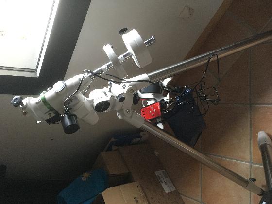 Morbihanle 20-06-2021 par Garybreizh56Suite évolution de monture, je vends ma monture skywatcher NEQ3.2 (trépied acier), avec viseur polaire dernière génération réglé, motorisation double axe (dernière version) et alimentation secteur pierro astro.