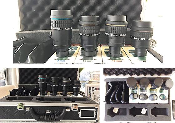 Bruxellesle 23-06-2021 par durandal424 oculaires Baader Hyperion ; jeu de 4 oculaires modulables focales 5, 10, 17 et 24 mm, avec valise de rangement. Champ apparent de 68° avec bonnettes à oeillères et Coulants 31,75 mm et 50,8 mm (1.25" et 2") – Etat nickel, impeccable.