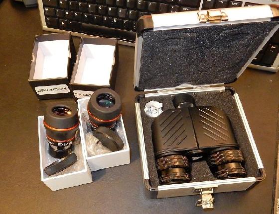 + une paire d’oculaire en état neuf BST Starguider 25mm 60° De champ et 20mm de relief d’oeil (clones des TS NED qui valent 94 euros pièce), optique constituée de 6 lentilles en 4 groupes, dont 2 en verre ED.