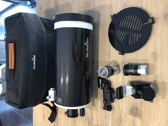 le 11-03-2021 par romainlapougeTélescope Maksutov Sky-Watcher 180/2700 avec son chercheur, renvoie coudé, oculaire 28 mm et 10 mm.