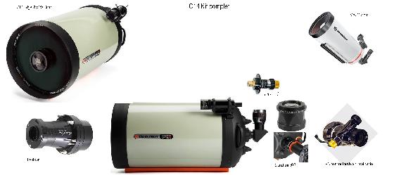 1 Celestron C14 Edge (ventille+blocage miroir) HD d356/3910mm avec correcteur intégré, coulant 2" 50.8 neuf actuel 9450€ voir ici : https://www.astroshop.de/fr/telescopes/telescope-schmidt-cassegrain-celestron-sc-356-3910-edgehd-1400-ota/p,16403#tab_bar_1_select