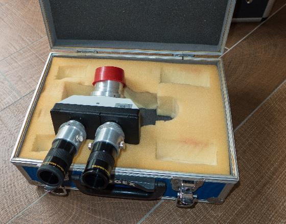Bouches du Rhônele 28-08-2022 par tchuilTête bino TS Optics, prismes de 30mm, ouvertures côté oculaires de 28mm donc sans vignettage avec portes-oculaires auto-centreurs. Raccordement T2 femelle côté télescope avec écrou de serrage. Chemin optique ou tirage de 118.66mm. Distance inter-pupillaire de 54.4mm à 77mm. Bouchons et valise de transport.