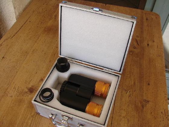 Avec son réducteur de focale dédié, son masque de bathinov et sa valise.