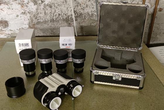 ma tête binoculaire binoculaire Baader Maxbright en très bon état ainsi que 2 paires d'oculaires Vixen NPL 40mm et 30mm quasi neuf.