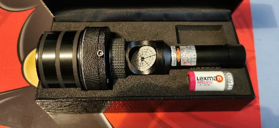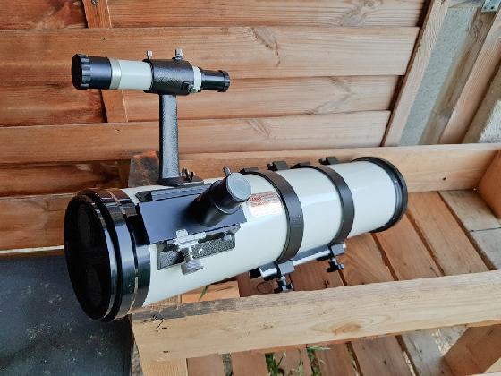 Avec queue d'aronde Vixen (intégrée aux anneaux), chercheur, tous les capuchons d'origine et deux oculaires au coulant 24.5 mm (2.5 et 12.5 mm), barlow si nécessaire