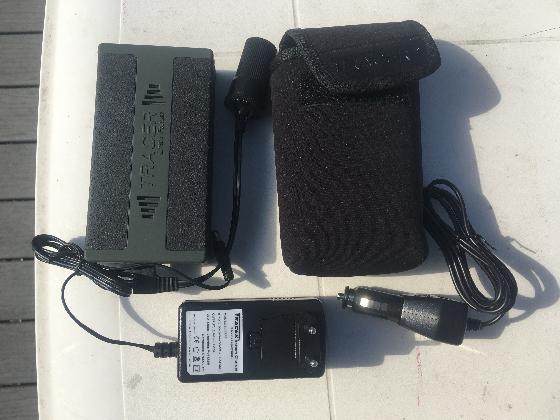 Pas de Calaisle 23-08-2021 par slyvBatterie Lithium Tracer 12V 8 AH peu servie avec chargeur secteur, chargeur allume cigare, adaptateur allume cigare et house.