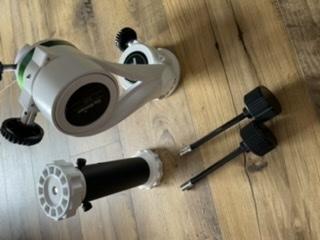 Avec queue d'aronde Vixen (intégrée aux anneaux), chercheur, tous les capuchons d'origine et deux oculaires au coulant 24.5 mm (2.5 et 12.5 mm), barlow si nécessaire